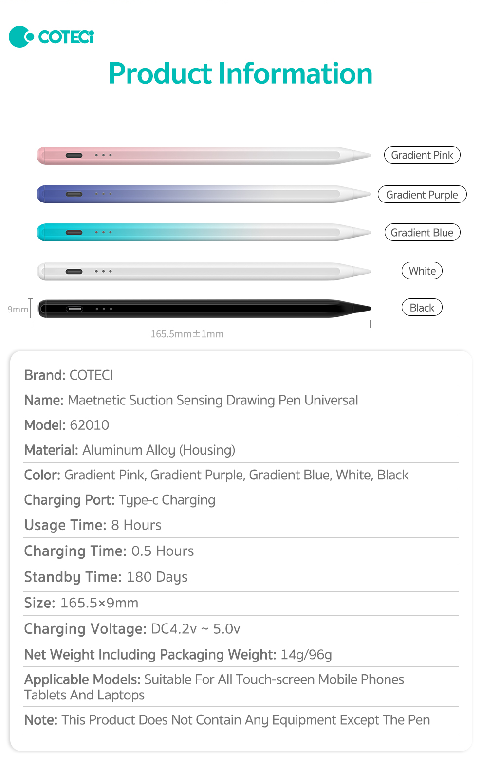 | Type | Magnetic suction sensing drawing pen / universal stylus |