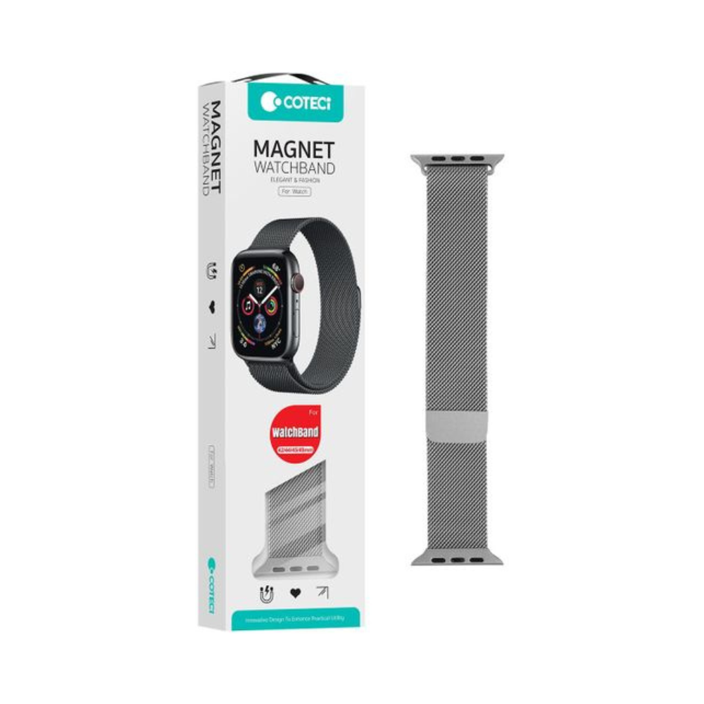 The COTECi W6 Stainless Steel Magnet Apple Watch Band (WH5203-GC / WH5203-TS) is a premium replacement band designed for Apple Watch users seeking style and durability. Made from high-quality stainless steel, it features a magnetic clasp for easy adjustment and secure fit. The sleek and elegant design complements both casual and formal wear, while the durable material ensures long-lasting performance and resistance to wear and corrosion.