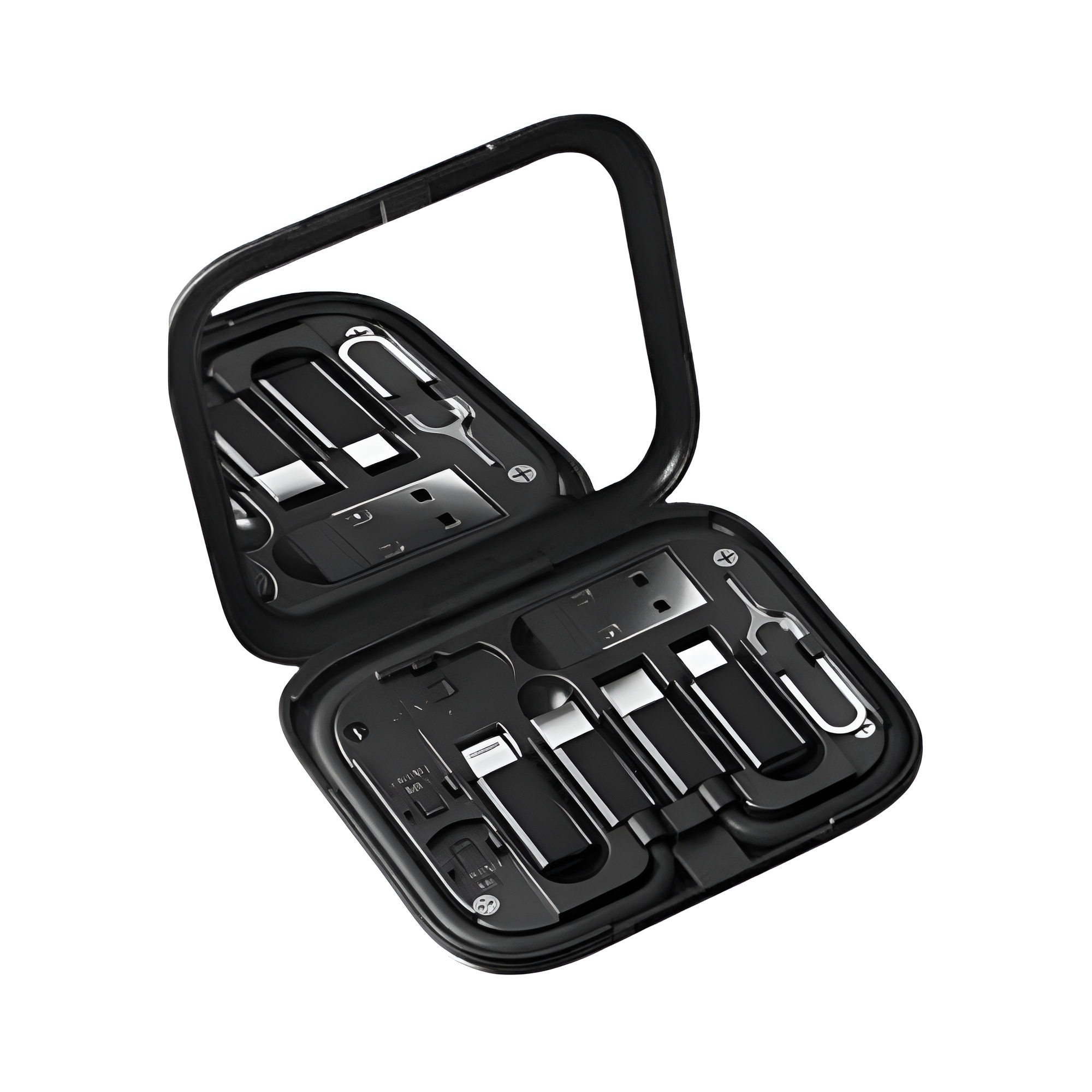 The COTECi Travel Version 8-in-1 Data Cable Storage Box (87702-BK) is a compact and organized solution for storing and managing multiple charging cables, USB cords, and adapters while traveling or at home. Designed for convenience, it keeps your cables tangle-free, easily accessible, and neatly stored in a portable black case.