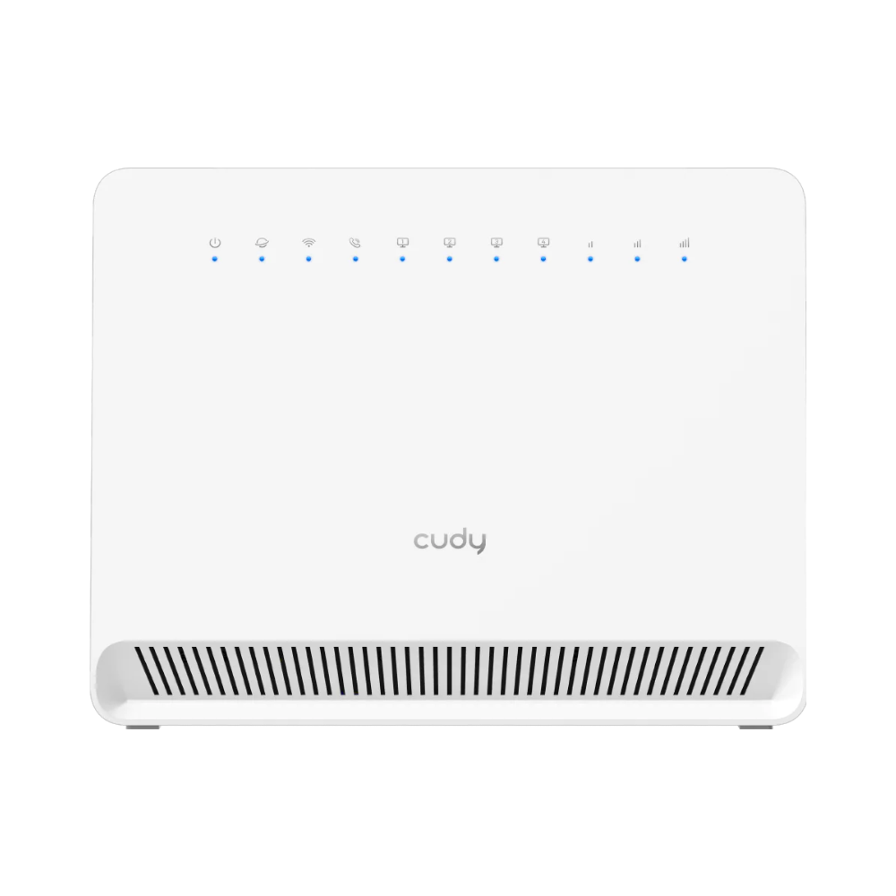 The Cudy 4G AC1200 Wi‑Fi Router with Voice (LT700V) — model LT700V 1.0 — combines LTE Cat 6 cellular connectivity with dual‑band Wi‑Fi 5, four Gigabit Ethernet ports, and a VoLTE-compatible RJ11 port for traditional phone usage. With speeds up to 300 Mbps on 4G LTE, 867 Mbps on 5 GHz Wi‑Fi, and 300 Mbps on 2.4 GHz Wi‑Fi, and support for external antennas via SMA connectors, LT700V delivers stable wireless and wired connections. It supports up to 128 devices (recommended ~50 simultaneously), offers guest networks, QoS, and flexible operation modes including WISP and mesh backhaul, making it suitable for homes or small offices in areas with unreliable fixed broadband.