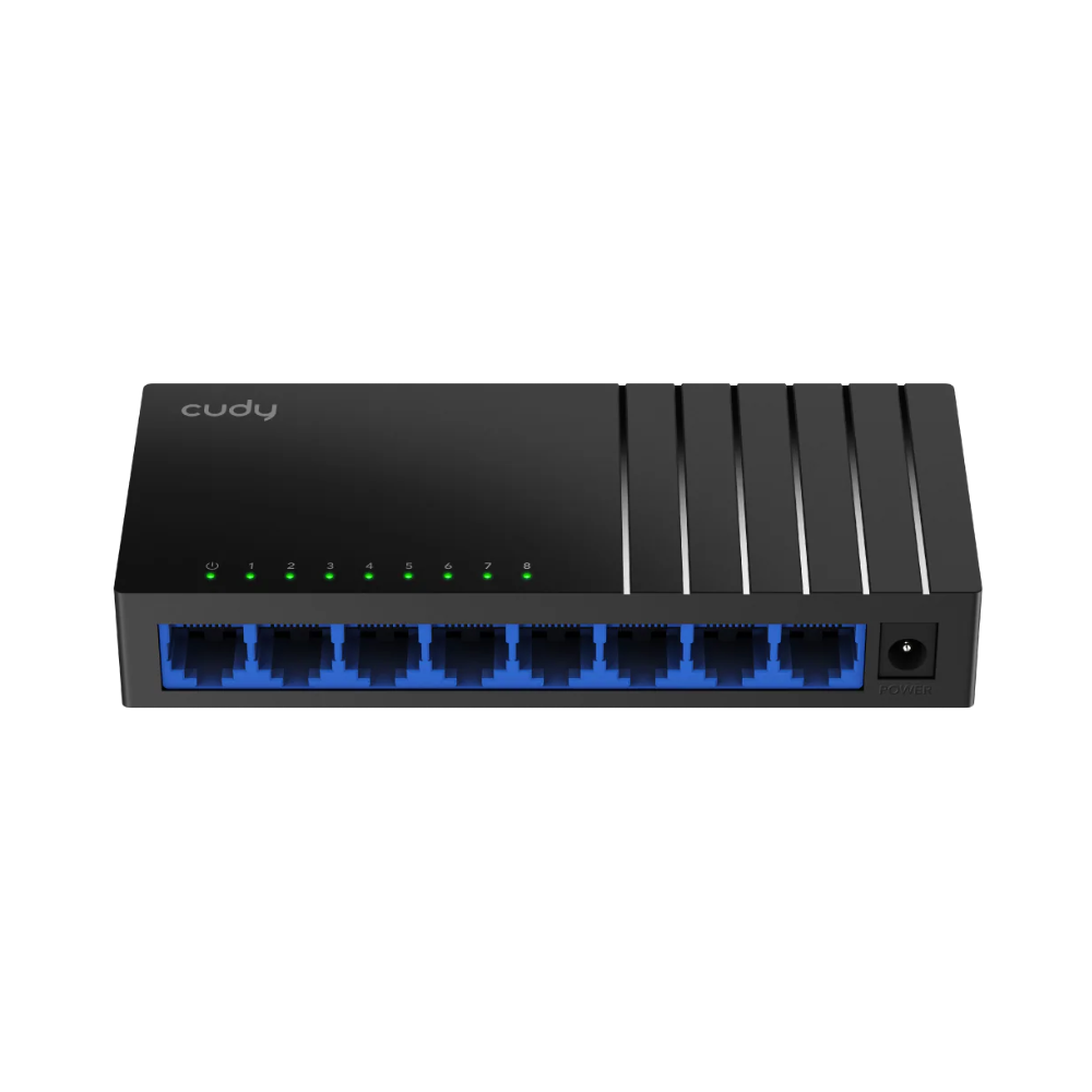 The Cudy 8‑Port Gigabit Unmanaged Switch (GS108D 4.0) — model GS108D 4.0 — is a compact unmanaged Ethernet switch ideal for home or small-office networks. It features 8 Gigabit RJ‑45 ports and supports extended transmission distances up to 170 m over Cat 5e or better cabling. The GS108D 4.0 is plug-and-play, with auto-negotiation and Auto‑MDI/MDIX support, and can be installed on a desk or mounted on a wall.