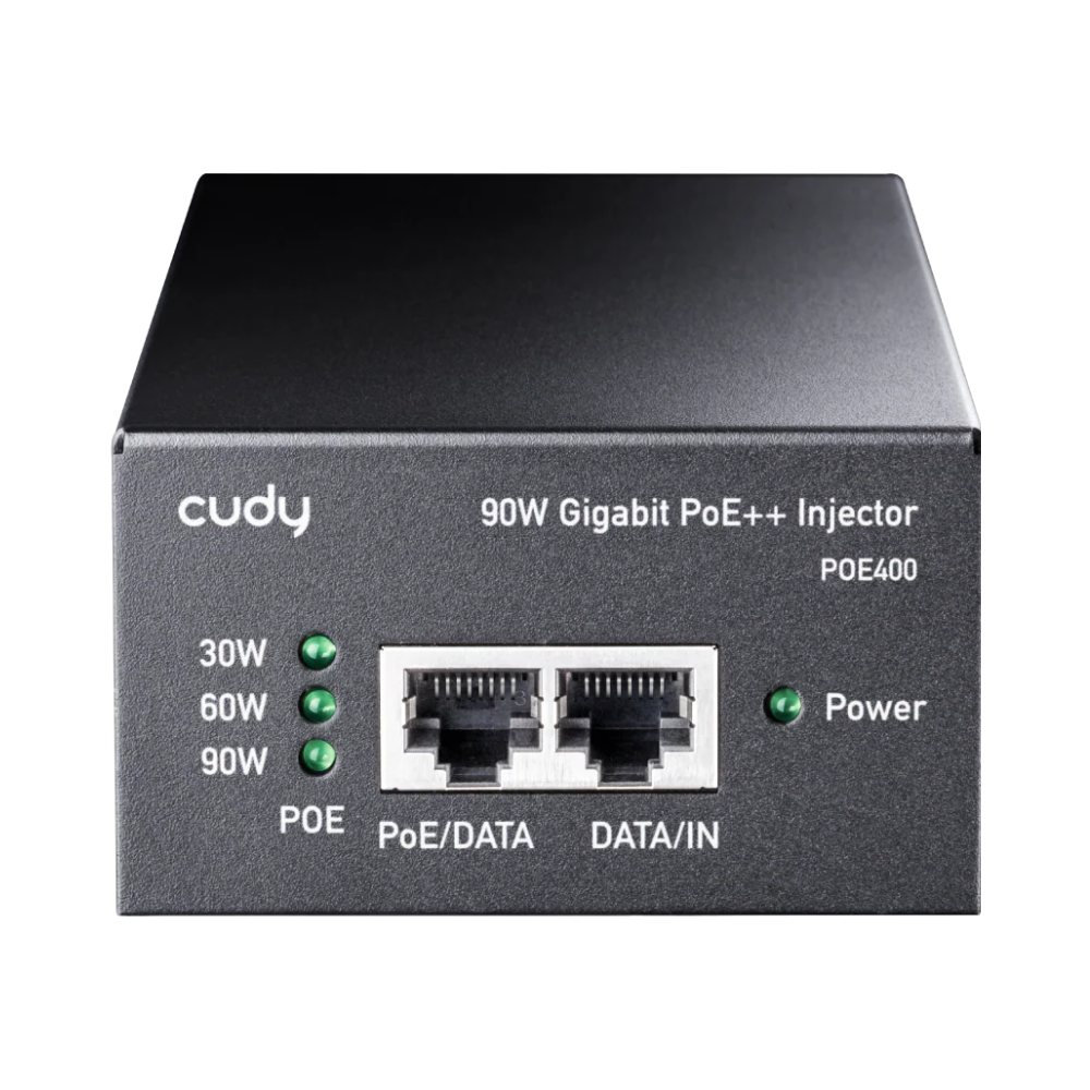 The Cudy Passive Gigabit PoE Injector (POE48-24W) — model POE48-24W — is designed to deliver both power and data over a single Ethernet cable for PoE-enabled devices such as IP cameras and access points. It supports 10/100 Mbps data rates and provides up to 24 W of power per user port, allowing flexible device placement without separate power adapters.