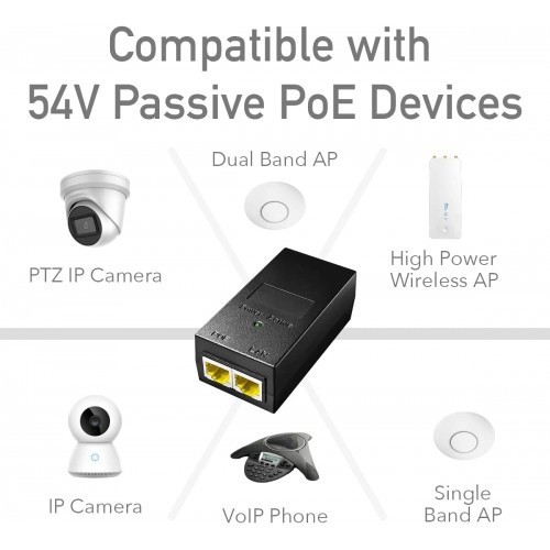 “Reliable passive Gigabit PoE injector with stable 24 W output — perfect for powering IP cameras or access points without extra adapters.”