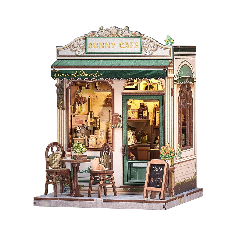 The CUTEBEE DIY Book Nook Kit – Sunny Cafe invites you to craft a charming miniature cafe scene filled with warmth, sunlight, and cozy details. This delightful DIY kit is perfect for hobbyists aged 14 and above, offering 2–4 hours of creative, screen-free enjoyment. Once assembled, it becomes a beautiful bookshelf decoration or a unique gift, capturing the serenity of a sunny afternoon and the joy of miniature craftsmanship.