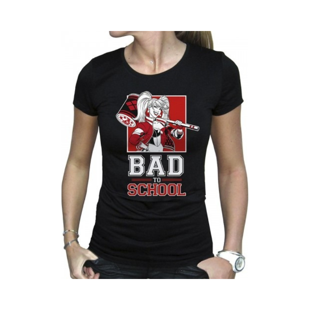 DC Comics Harley Quinn “BAD TO SCHOOL” Women’s Black T-Shirt