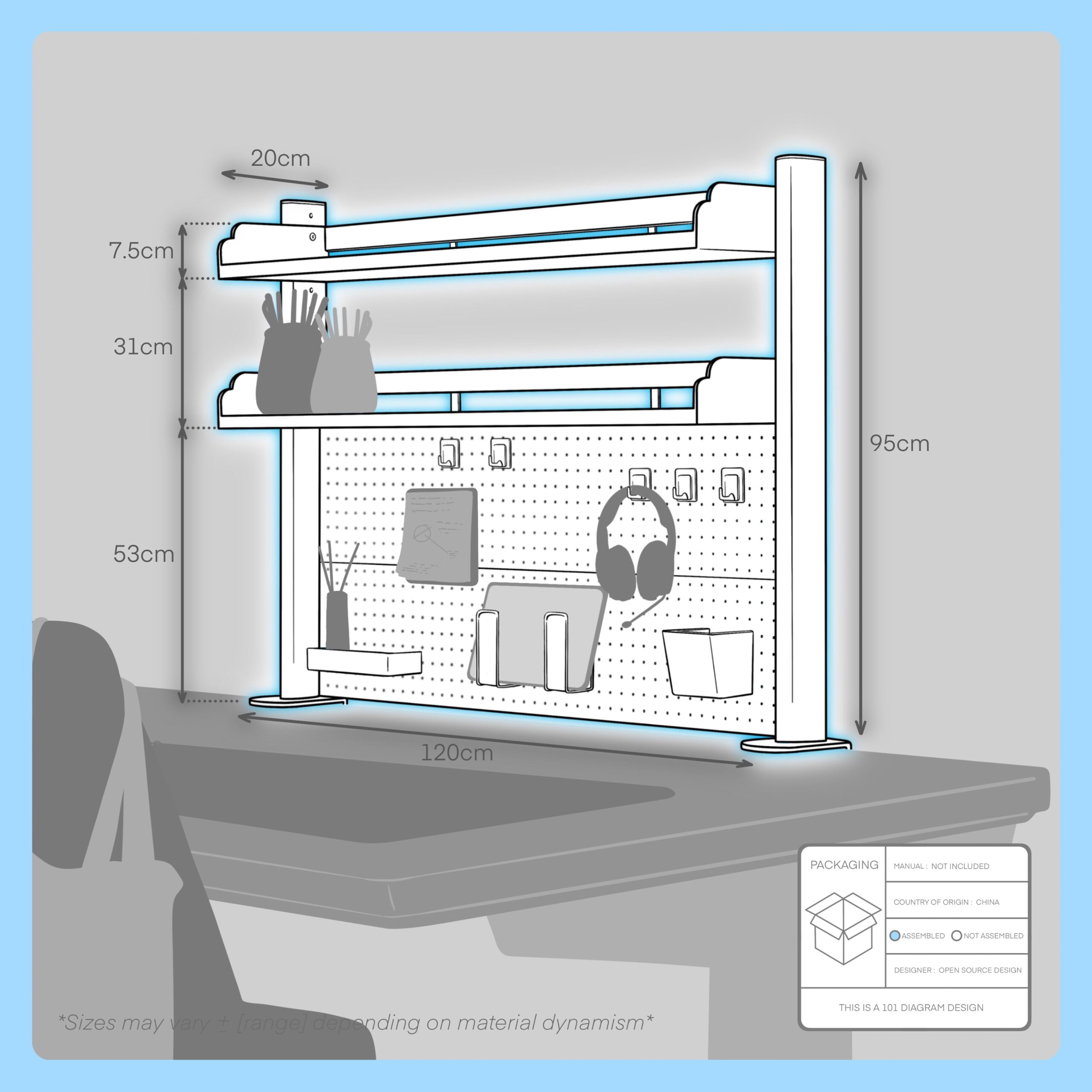 • Improve Space Utilization: Easily organize your gaming area and other office areas with our versatile and efficient wall-mounted storage pegboard kit. Neatly hang your tools, accessories and gear for quick and easy access, maximize the use of wall space, keep items tidy, and enhance the atmosphere of the space