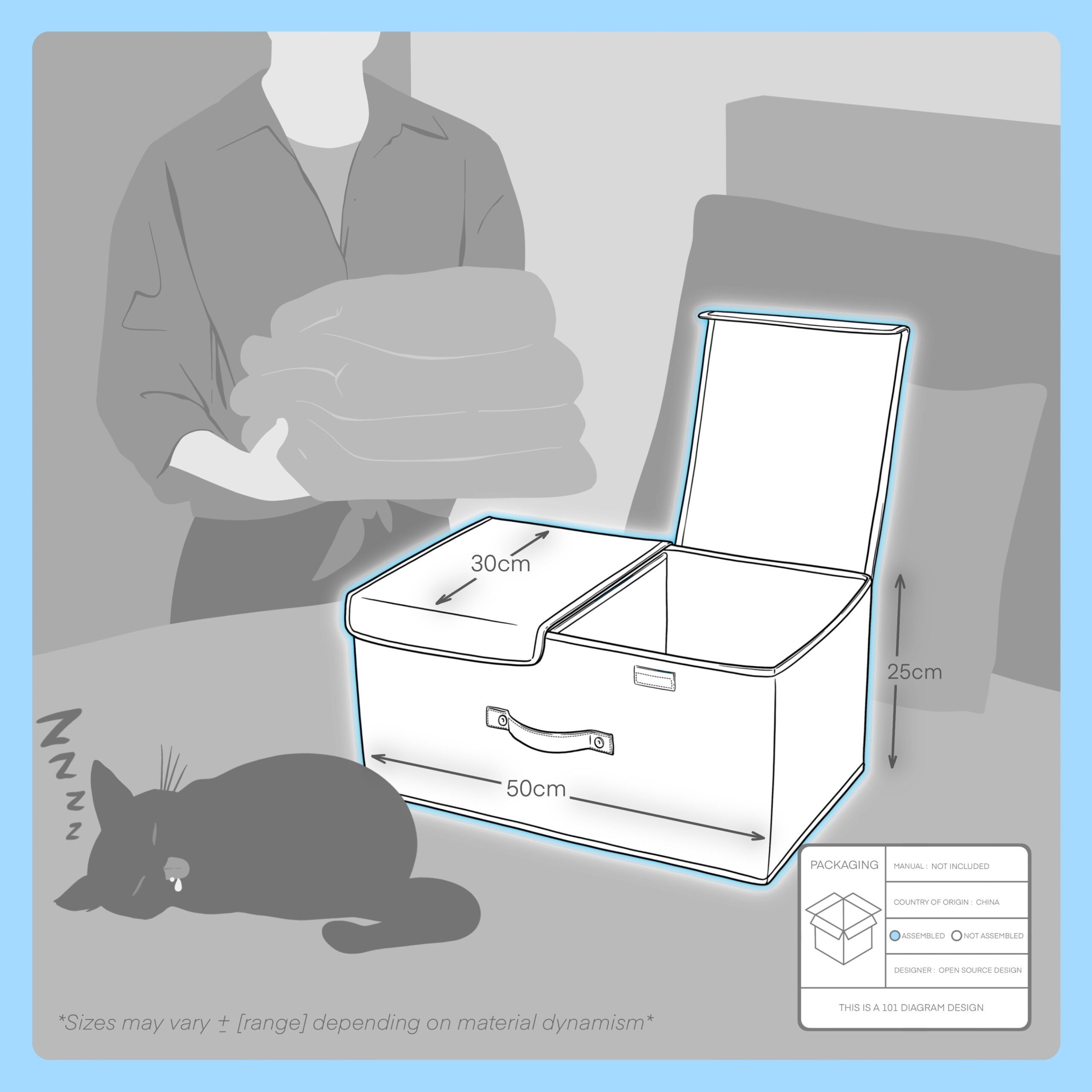 Double Lid Design: Fine workmanship to hold shape for a long time, Flip-top design keeps things away from dust, with easy-to-grip sewn handles.