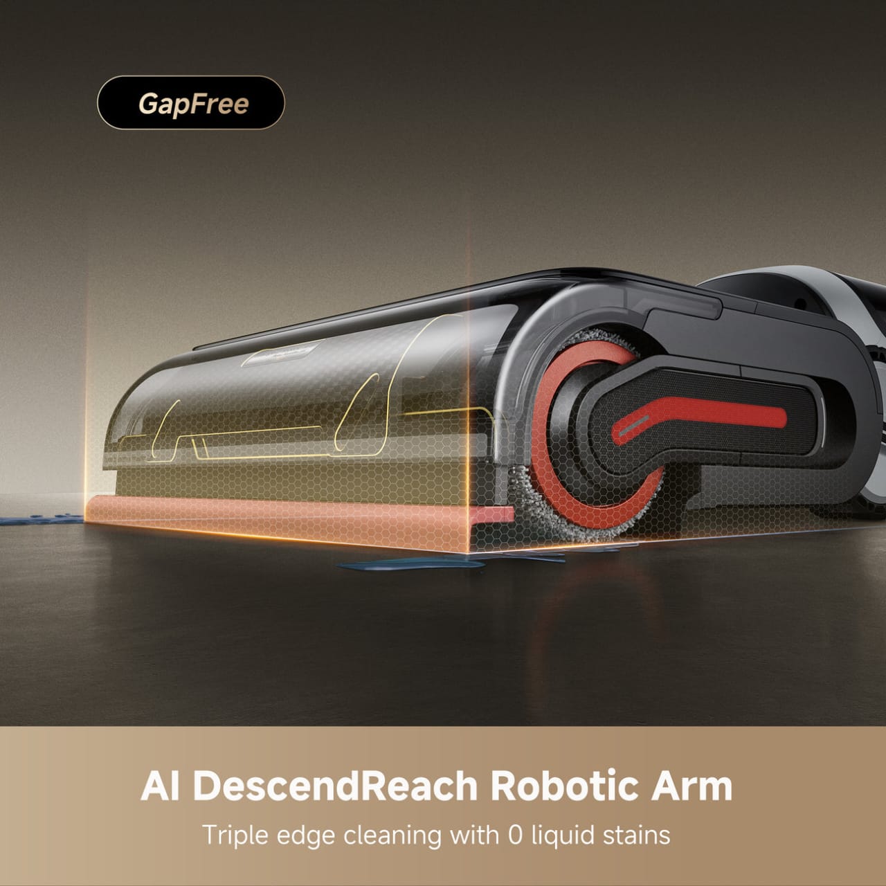 | Edge & Reach | AI DescendReach™ arm, triple-edge cleaning, 180° lie-flat reach |