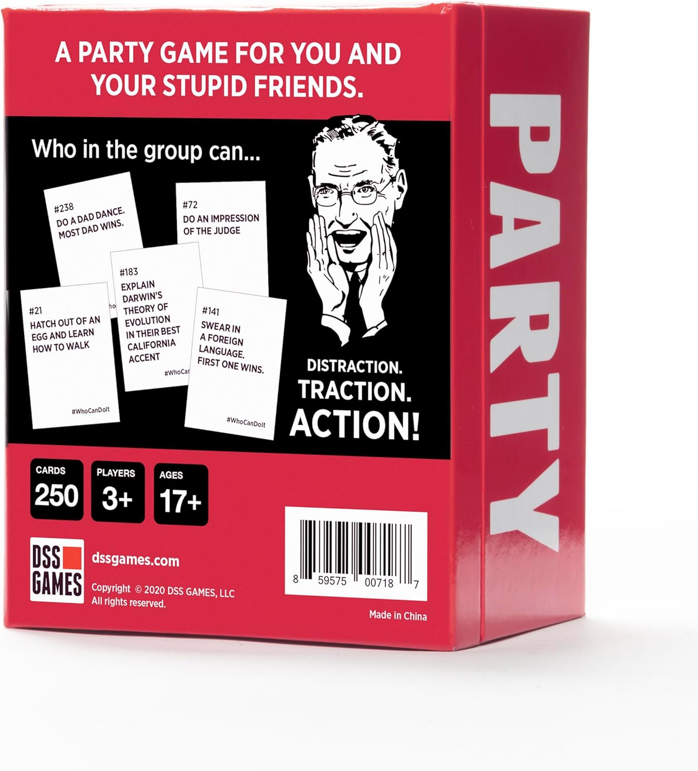 The DSS Games – Who Can Do It? is a fast-paced and hilarious party challenge game where players compete to complete outrageous, skill-based, or funny challenges. Perfect for friends, family game nights, parties, or social gatherings, this game guarantees laughter and unforgettable moments.