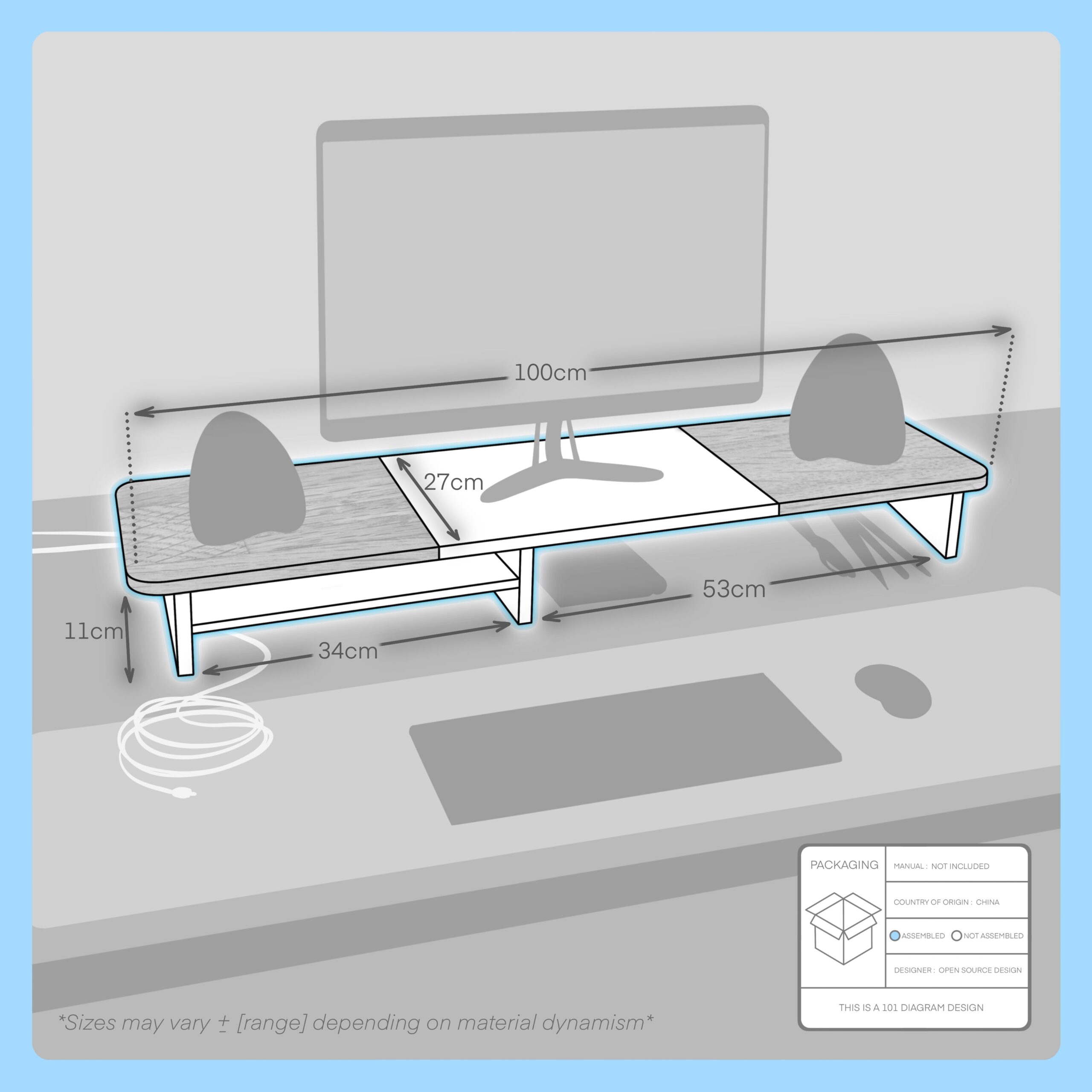 1.Spacious Surface: The dual monitor stand’s generous 100x27cm panel accommodates most display screens, fitting 17-27 inch computers with ease, and offers ample space for a laptop, monitor, printer, or other devices simultaneously.