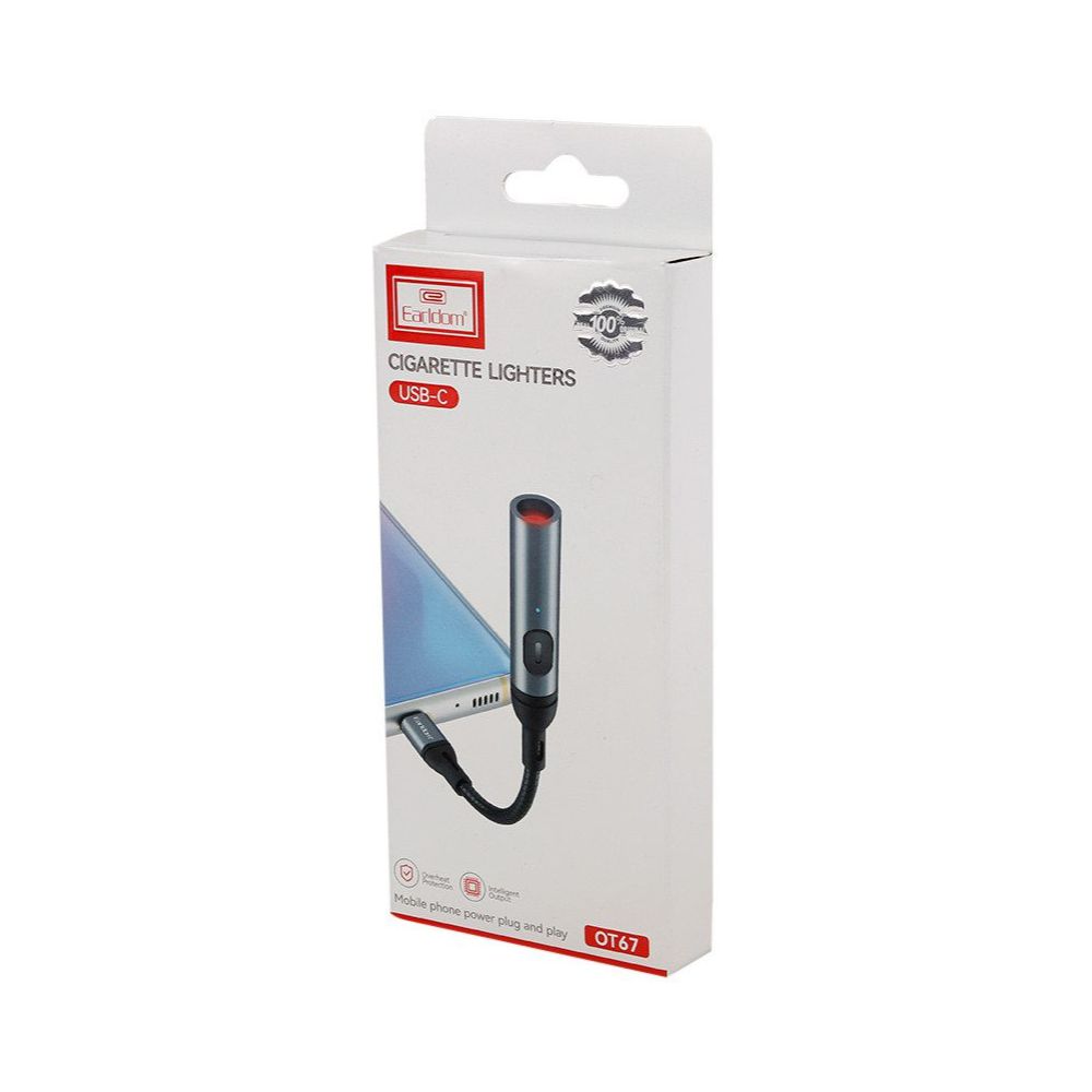 The Earldom Cigarette Lighter OT67 is a stylish and practical rechargeable lighter designed for everyday use. Featuring a flameless electric ignition system, it provides reliable performance even in windy conditions. Its compact metal body offers durability and a premium feel, making it ideal for smokers, outdoor use, or as a modern accessory. Rechargeable via USB, it eliminates the need for gas or fuel refills.