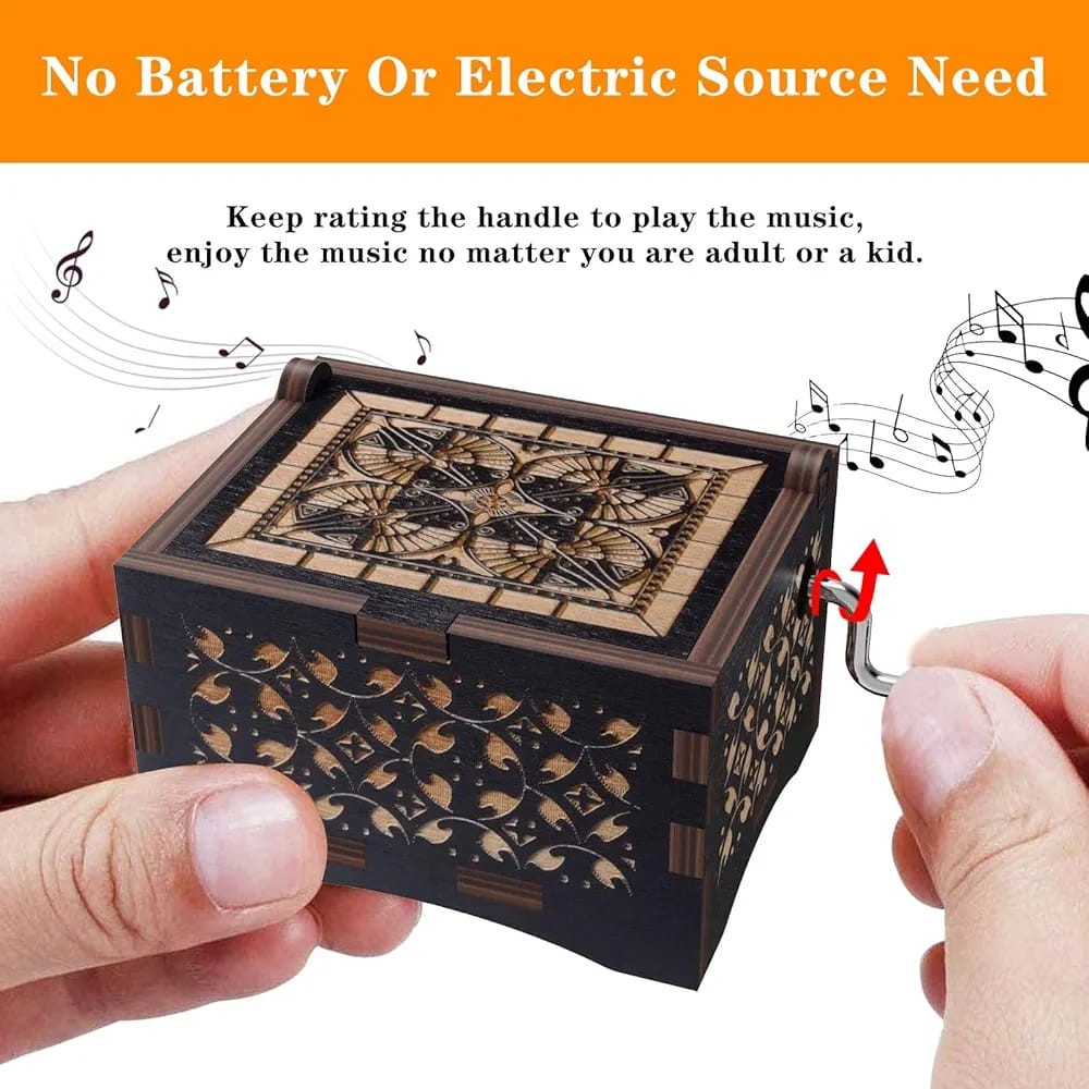 | Features | Manual hand-crank mechanism, engraved wooden detailing inspired by classic folk music, compact and portable size, plays the iconic You Are My Sunshine melody, ideal for sentimental gifts and music lovers |