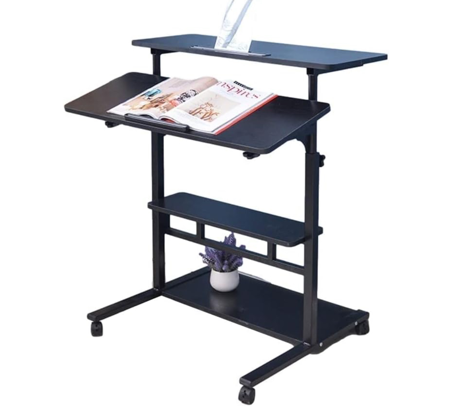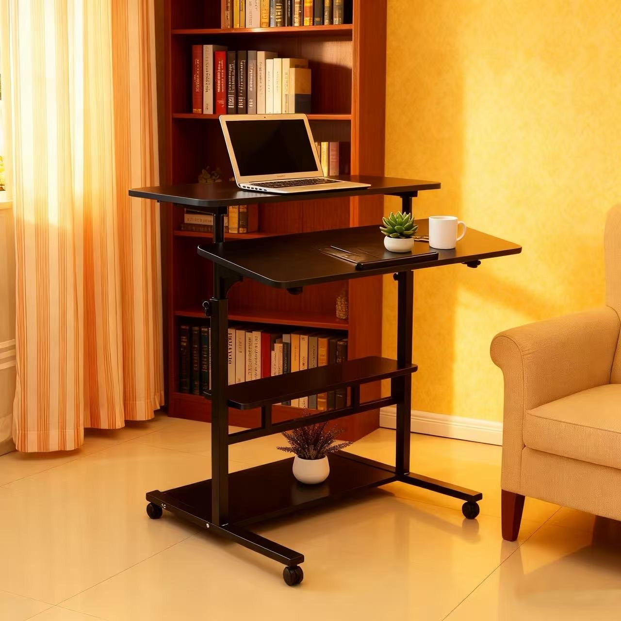 Study and Stable Construction: With the four-legs and steel frame support design, this stand up desk provide superior stability and durability even at the highest position to keep this laptop rolling desk from leaning and shaking.