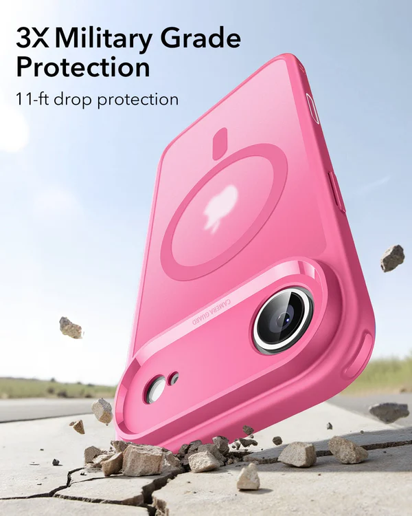 The ESR Classic Hybrid Magnetic Case (Camera Control) in Frosted Pink is a transparent protective case designed for the iPhone Air. It features an integrated magnetic ring that ensures reliable MagSafe alignment for stable wireless charging and secure attachment to MagSafe accessories. The hybrid construction combines a rigid acrylic back with shock-absorbing TPU edges for dependable everyday protection and raised borders to guard the screen and camera. The dust-proof camera control cover provides responsive tactile access, keeping the camera controls easy to use while offering added protection. Anti-yellowing materials help maintain the case’s clarity over extended use.