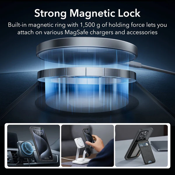 HaloLock FeaturesMagnetic alignment for secure MagSafe accessory attachment