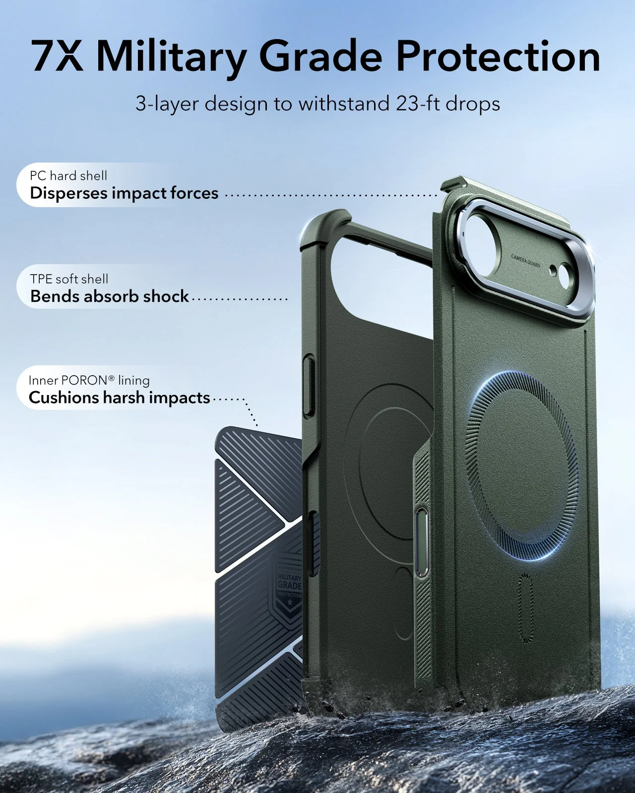 | Drop Protection | Military‑grade (up to ~7 m) impact resistance |