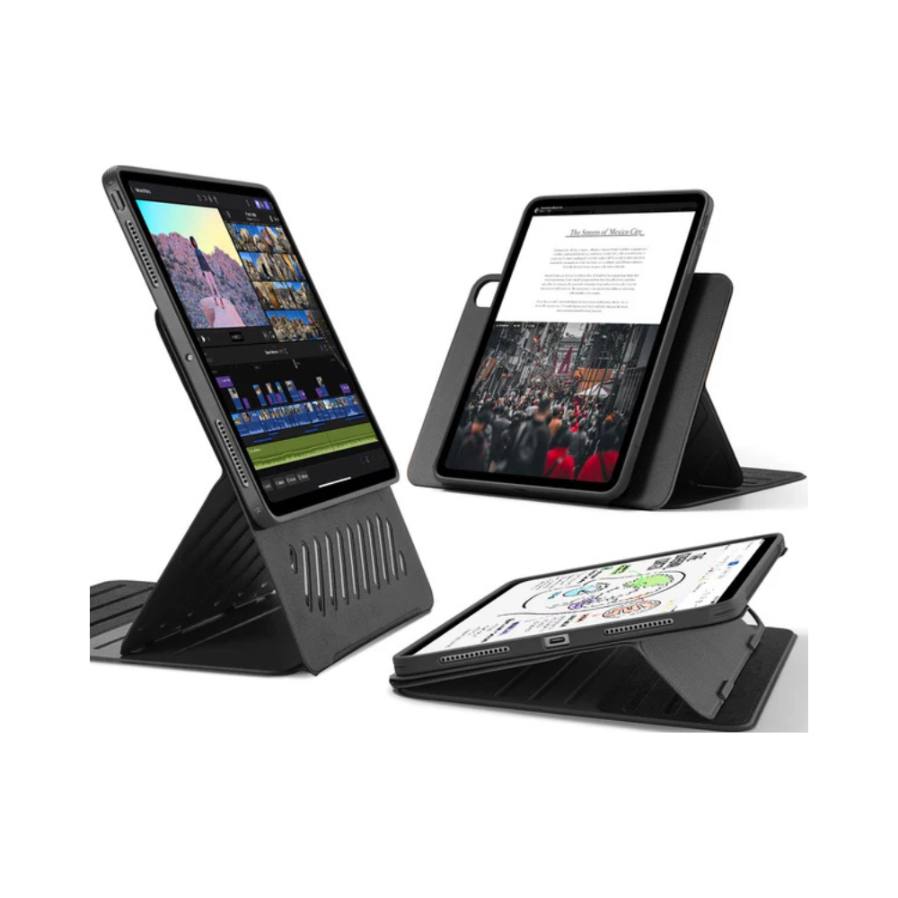 The ESR Shift Magnetic Case for the iPad Air 13″ (2025/2024) in Black is a versatile protective case that blends everyday defense with magnetic stability and adjustable viewing angles. Designed specifically for the iPad Air 13″ models, it features strong magnetic brackets and support panels that let you prop up your tablet at multiple viewing and writing angles — from upright landscape and portrait positions to low angles ideal for drawing or typing. The case’s magnetic system also allows you to detach the cover easily and use the back shell alone when you want a slimmer setup. Wide magnetic support brackets lock into different grooves in the base for superior stability on your lap, desk, or kitchen counter, and the raised screen view brings the display closer to natural eye level for longer sessions of work or entertainment. With full coverage protection, a sturdy magnetic stand design, and a slim profile that doesn’t add unnecessary bulk, this case enhances both usability and everyday resilience for your iPad Air.