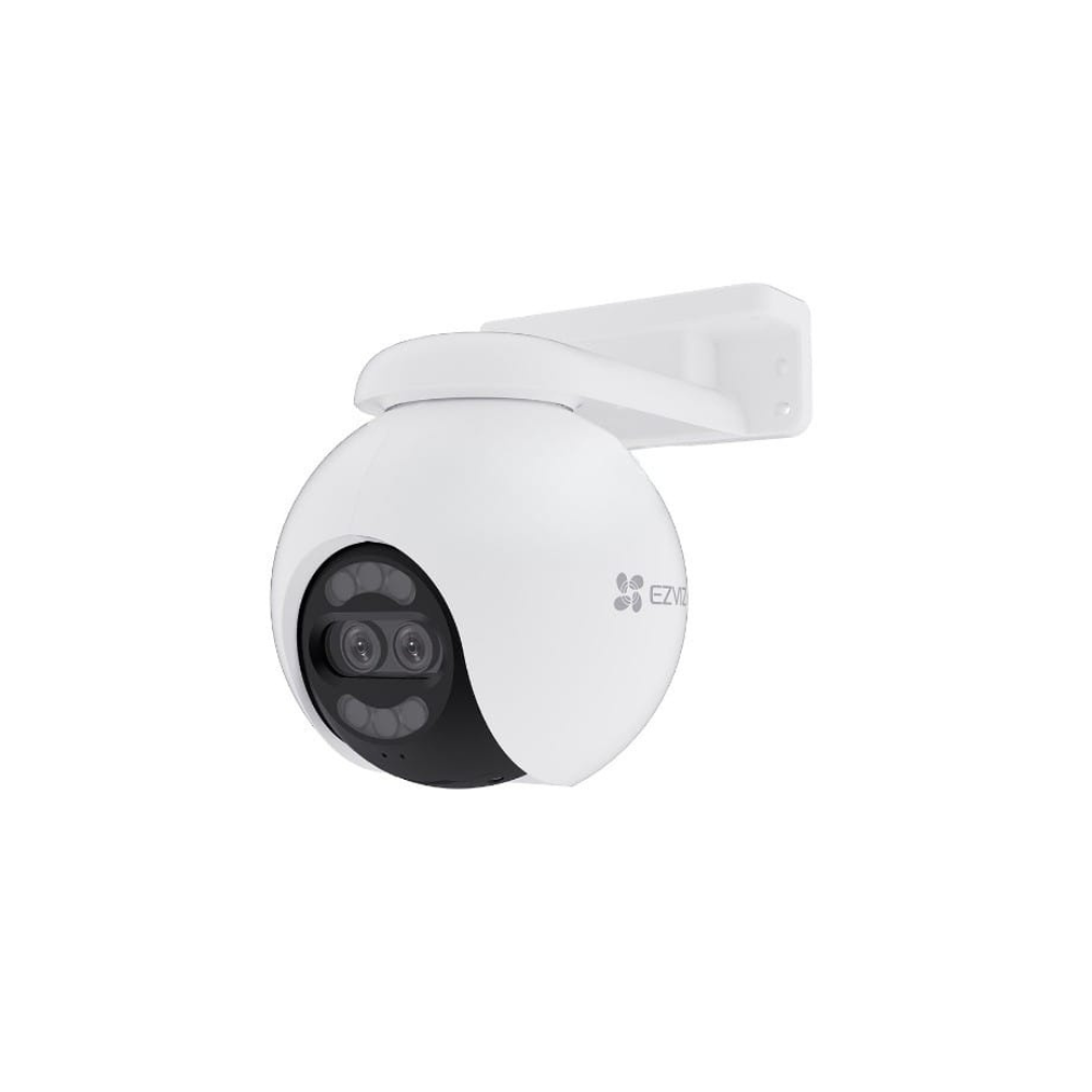 The EZVIZ H80x Dual 4K Pan & Tilt Camera packs two 8 MP UHD sensors into one motorized unit for seamless 360° coverage with no blind spots. The upper 4 mm lens captures broad scenes in 4K Ultra HD (3840×2160), while the lower 6 mm lens provides detailed close-ups. Intelligent co-detection and smart tracking hand off moving targets between lenses. Features include AI-powered human & vehicle detection, two patrol modes, one-tap lens switching, color night vision with warm spotlights, two-way audio, Active Defense (110 dB siren + strobe), and integration with Alexa & Google Assistant.