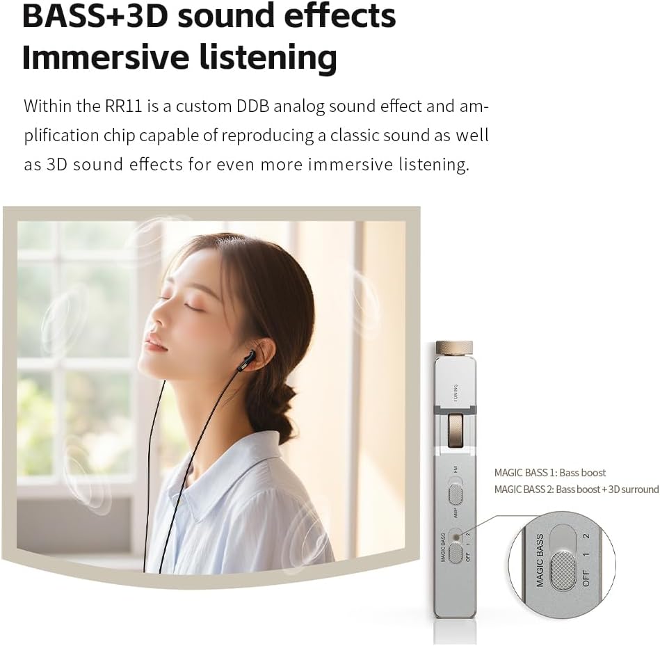 This versatile device doubles as a compact headphone amplifier when paired with the included digital-to-analog conversion cable, enhanced by the DDB analog sound effect chip for immersive 3D audio. Retro-style earbuds are included, making it a complete portable listening solution with distinct audio charm and lifelike sound reproduction.