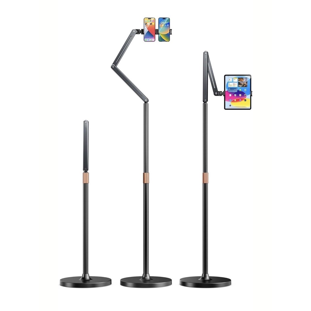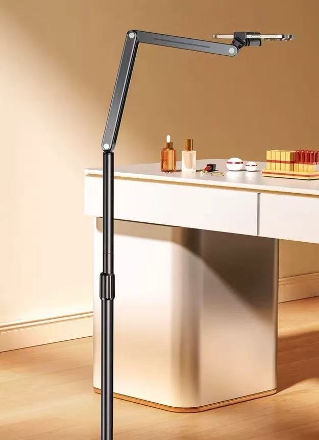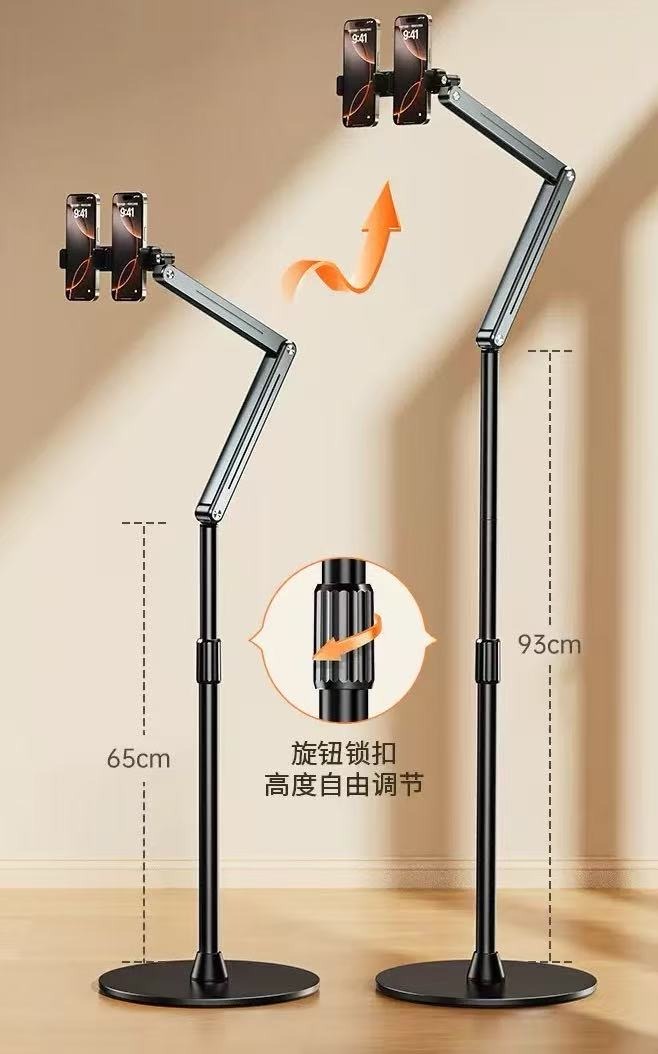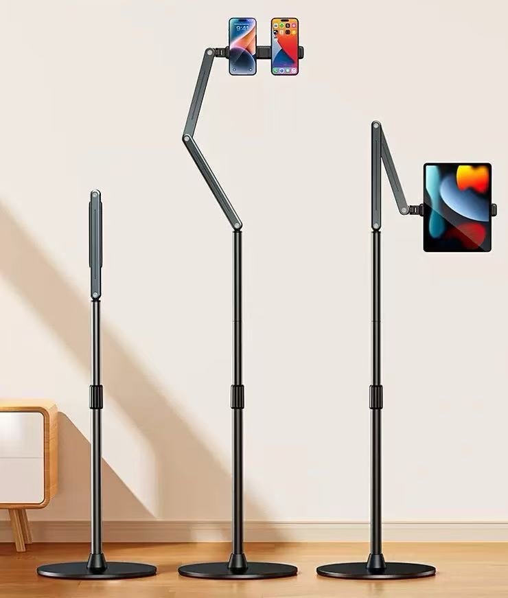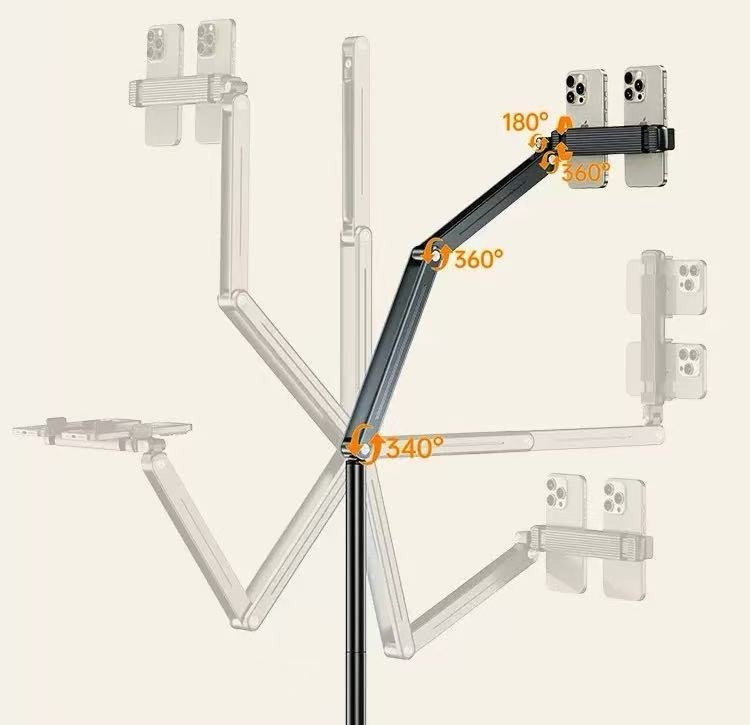 • Bionic mechanical arm, free adjustment: AL-60 floor stand adopts aluminium alloy multi-section rod design, 2 joints support 180°rotation can be freely adjusted front and rear distance. Mobile phone bracket support 360 ° rotation mobile phone can be freely adjusted angle.