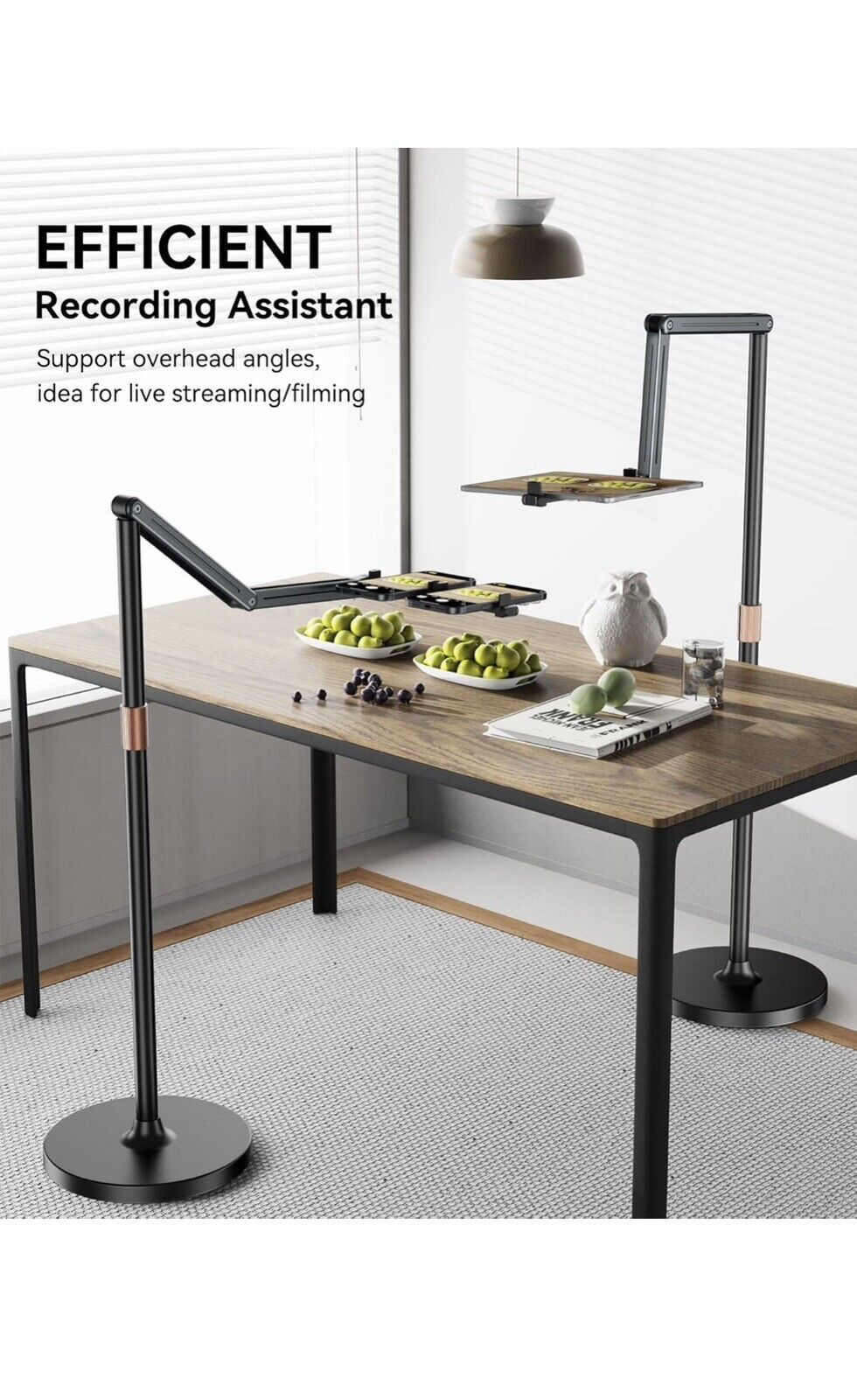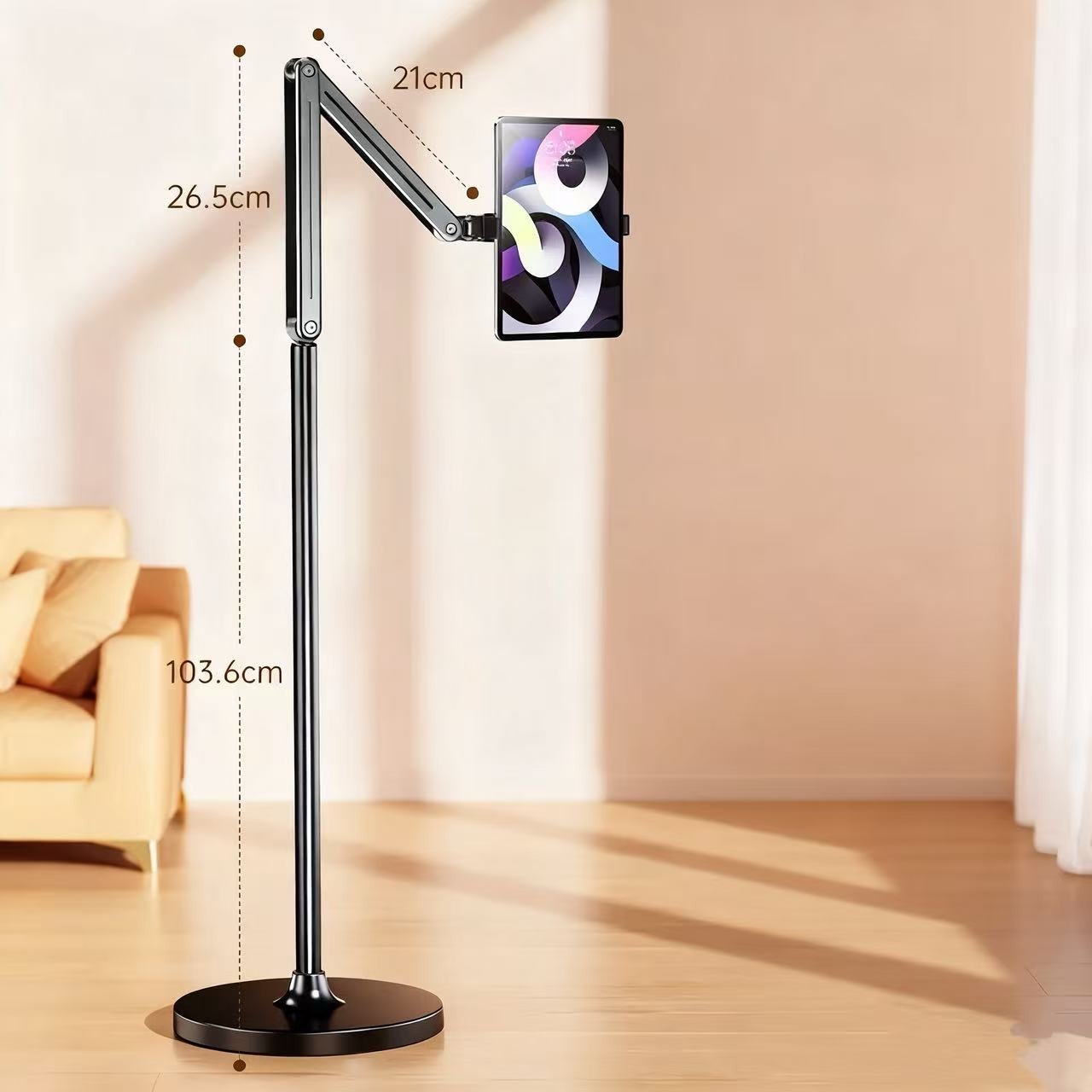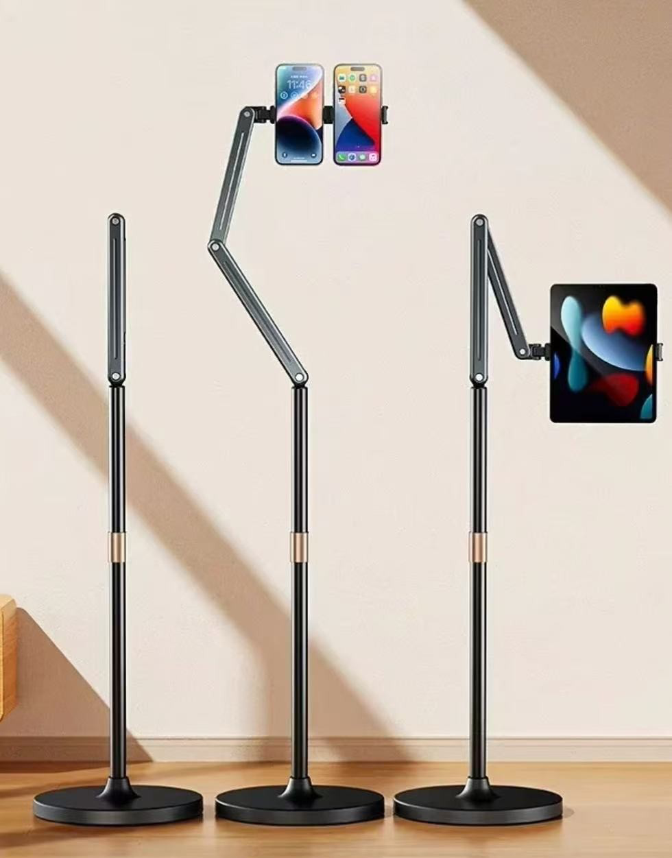 • Bionic mechanical arm, free adjustment: AL-60 floor stand adopts aluminium alloy multi-section rod design, 2 joints support 180°rotation can be freely adjusted front and rear distance. Mobile phone bracket support 360 ° rotation mobile phone can be freely adjusted angle.