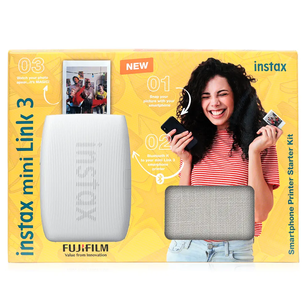 Capture and print memories with the Instax mini Link 3 Printer in Pink. This bundle includes a cute protective case and 1 pack of Instax mini film – instant fun at your fingertips!