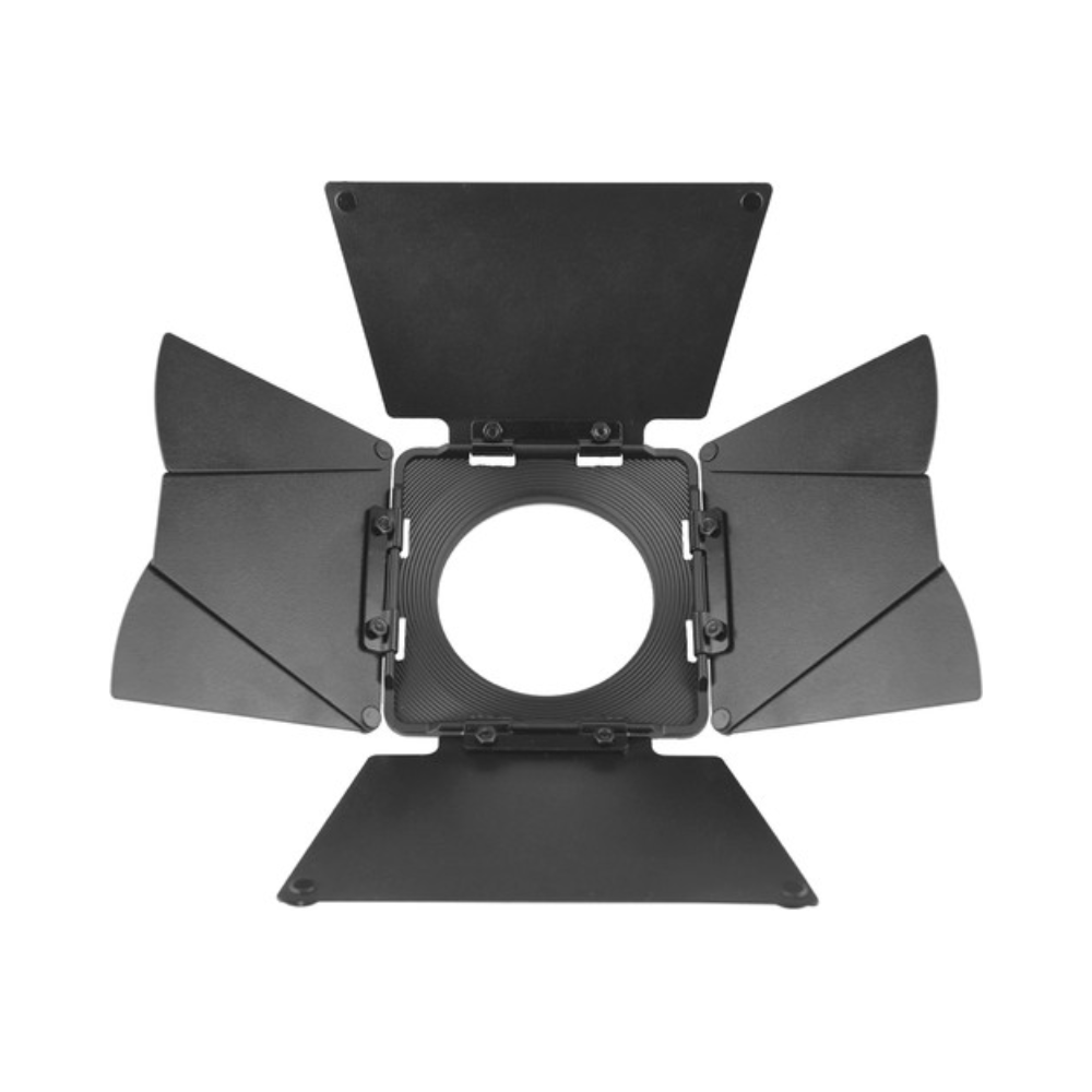 | Design | 8-leaf barndoor with 2 standard leaves + 2 double-extension leaves for precise beam shaping |