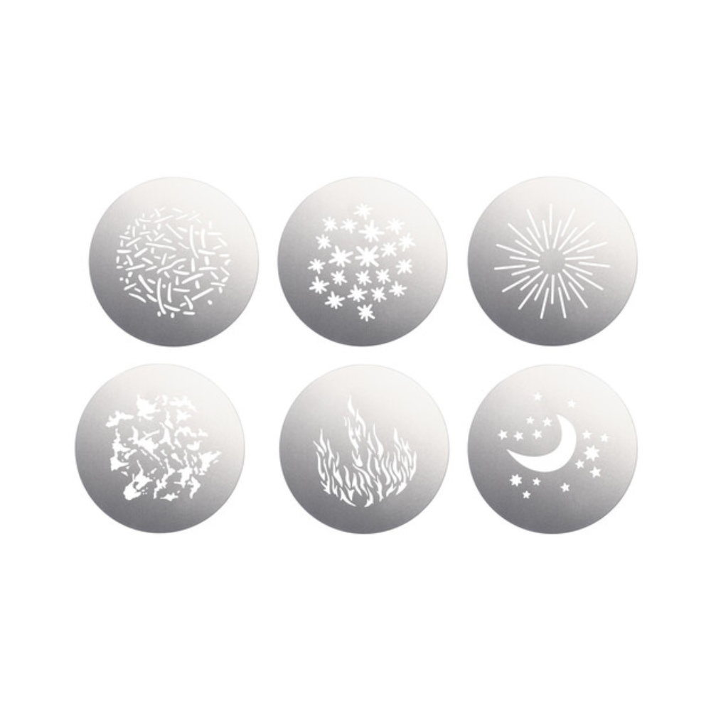 | Features | Six creative patterns, durable metal construction, precise cut for sharp projections, easy to swap in compatible holders |