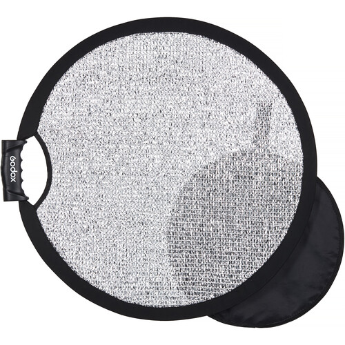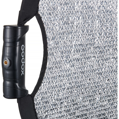 Constructed with woven mesh fabric, this windproof reflector allows air to pass through, maintaining stability in outdoor environments. Dual ergonomic handles enable easy positioning in flat or curved (U-shape) configurations, while integrated 1/4″-20 threaded sockets allow mounting to light stands or accessories. Lightweight and portable, the Godox W-RFT55 folds down neatly into the included carrying bag for convenient transport and storage.