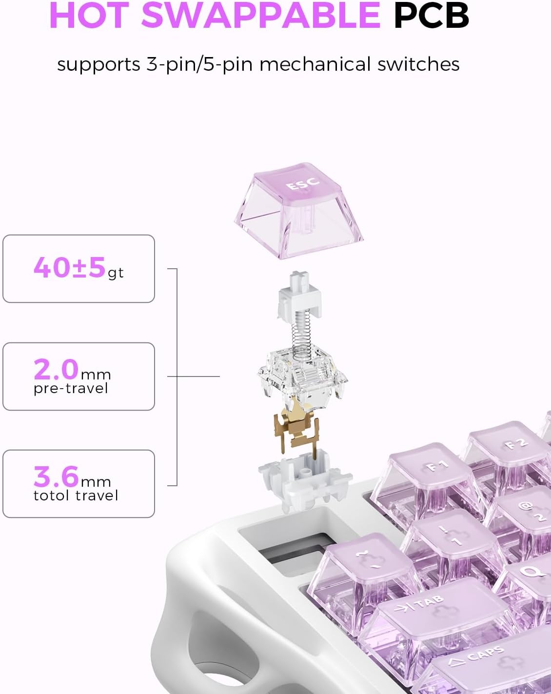 Crystal-clear design, fluid keystrokes, and versatile connectivity—where elegance meets performance.