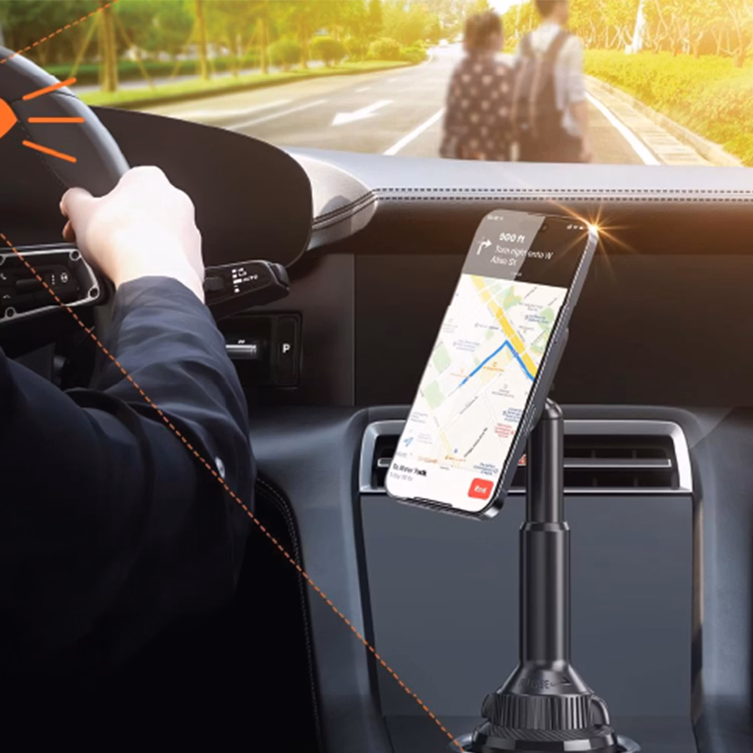 Its sleek design fits most cup holders, making it perfect for cars, desks, or home setups. Durable materials and a non-slip base guarantee stability, while adjustable angles provide the perfect viewing position.