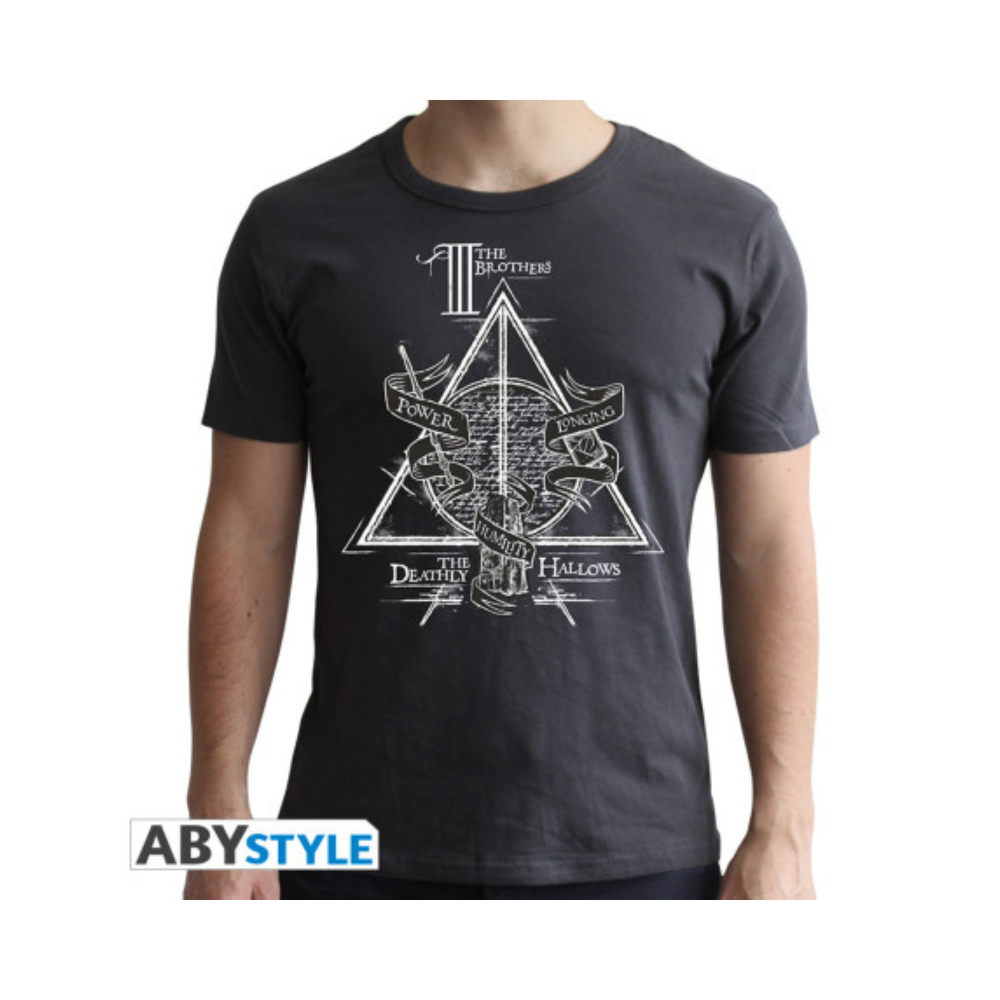 The HARRY POTTER – Deathly Hallows Men’s T-Shirt (Dark Grey, New Fit) is an officially licensed product from ABYstyle. Featuring the legendary Deathly Hallows symbol that represents the Elder Wand, the Resurrection Stone, and the Invisibility Cloak, this t-shirt embodies the mystique and legacy of the Wizarding World. Made from 100% cotton with a soft-touch fabric and a modern fit, it provides both comfort and style for fans of the saga.