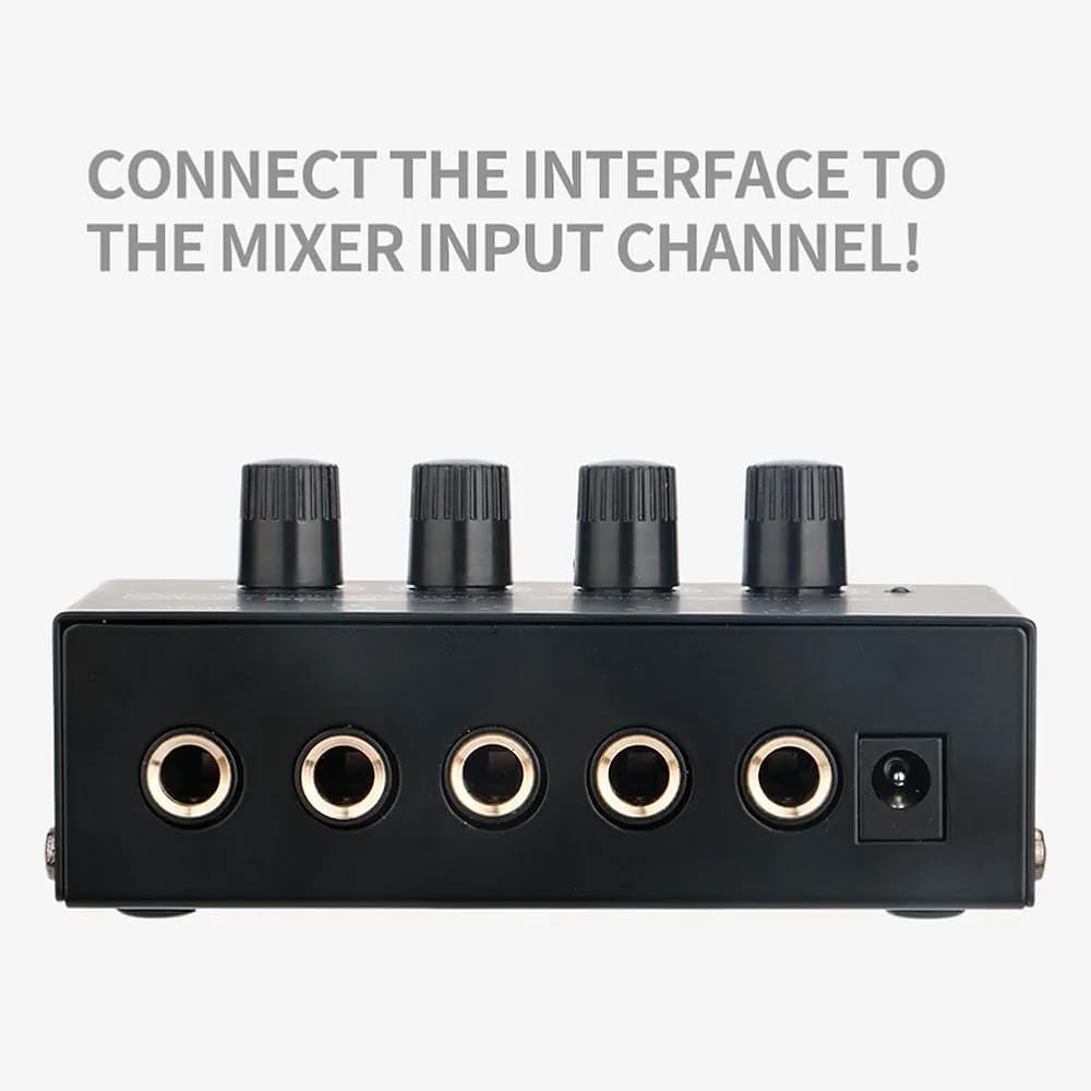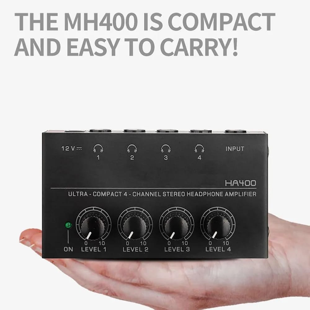 The Headphone Amplifier 4 Splitter HA400 is a compact and practical audio solution designed for shared listening and monitoring. Ideal for home studios, podcasting setups, music practice, and group listening environments, it allows up to four users to connect their headphones and listen to the same audio source simultaneously.
