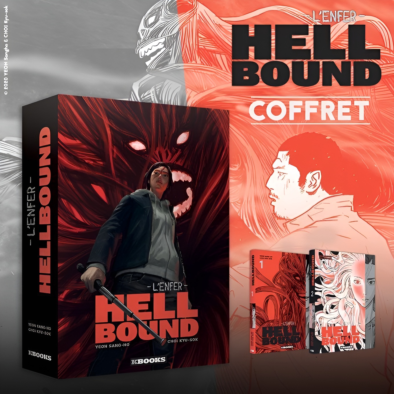 The Hellbound – Complete Box Set (French Edition) brings together the full two-volume webtoon series in a premium collector’s coffret published by Kbooks. This boxed set includes the complete story of Hellbound – L’Enfer, presented in its official French-translated paperback edition, making it an essential addition for fans of dark fantasy and dystopian storytelling.