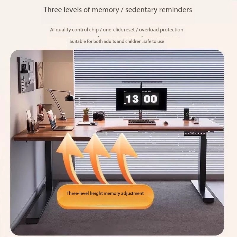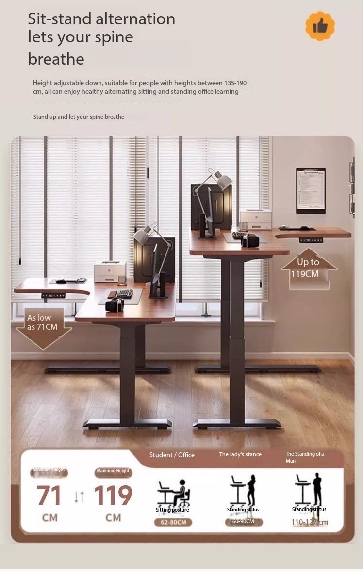 Upgrade your workspace with this premium height-adjustable sit-stand desk designed for flexibility, comfort, and productivity. The natural wood finish adds warmth and sophistication to any office or study setting, while the L-shaped design maximizes surface area and usability.