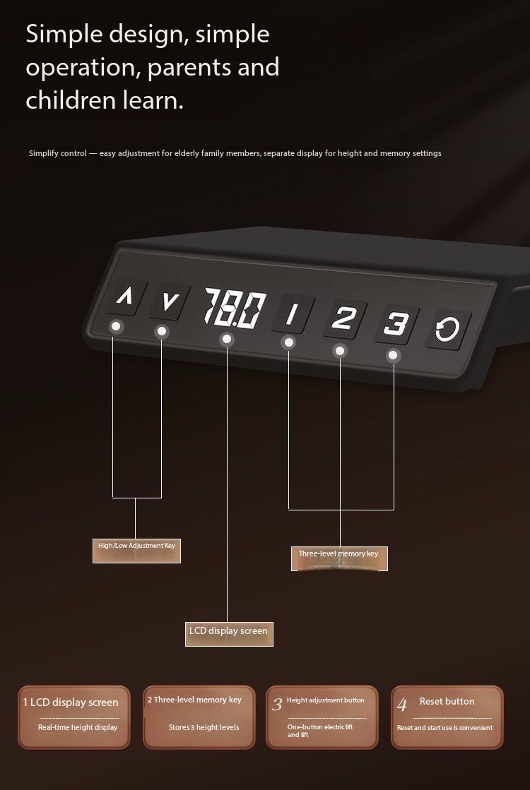 Effortlessly adjust desk height at the touch of a button with a whisper-quiet dual motor system. Digital control panel includes preset memory functions for quick switching.