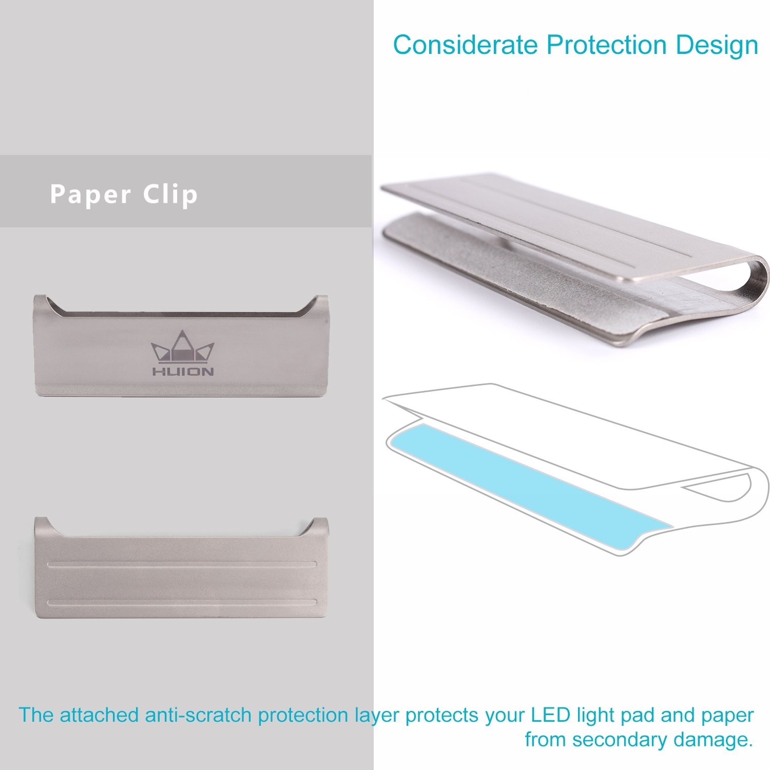 The Huion Holding Tracing Paper Clip for Light Pad is a practical accessory designed to securely fasten tracing paper, sketches or reference sheets to your LED light pad surface while you work. Made from durable stainless steel with a built-in anti-scratch protective layer, the clip holds paper firmly without bending, tearing, or damaging the pad’s surface. Its elegant rectangular design with rounded corners fits most light pads up to 8 mm thick — including Huion A2, A3, A4, LB4, LB3 and LA3 models — and can be bent slightly to match your preferred height for steady, precise tracing and drawing.
