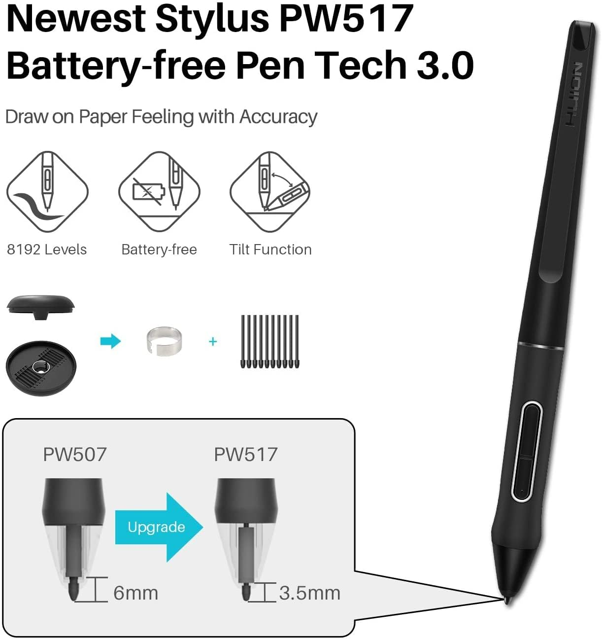 | Pen Technology | HUION PenTec 3.0 PW517 with capacitive pressure sensor |