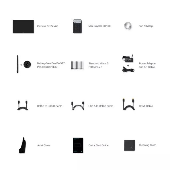 The **Huion Kamvas Pro 24 (4K)** is a flagship-level pen display built for professional artists, designers, animators, and studios that demand uncompromising precision and visual clarity. Featuring a massive **23.8-inch 4K UHD (3840 × 2160) IPS display**, this tablet delivers ultra-sharp detail, expansive workspace, and exceptional color accuracy with **140% sRGB color gamut** coverage. The **fully laminated, anti-glare etched glass** minimizes parallax and reflections, providing a smooth, paper-like drawing experience. Powered by Huion’s **PW517 battery-free pen** with **8192 levels of pressure sensitivity and ±60° tilt support**, every stroke feels natural and responsive. With robust connectivity, wide OS compatibility, and an ergonomic design ideal for long creative sessions, the Kamvas Pro 24 (4K) is the ultimate tool for high-end digital creation.