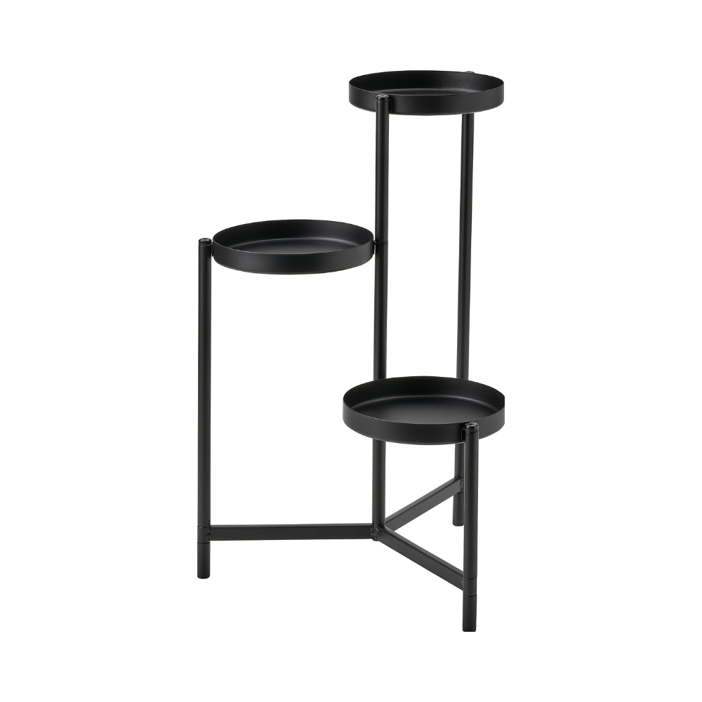 The IKEA OLIVBLAD Plant Stand is a stylish and functional piece designed to elevate your indoor or outdoor spaces. Standing at 58 cm tall, it features three circular trays at varying heights, each with a 19 cm diameter, allowing you to display multiple plants or decorative items. Crafted from steel with a polyester powder coating, the stand is durable and suitable for both indoor and outdoor use. Its sleek black finish complements various decor styles, making it a versatile addition to any room or balcony.