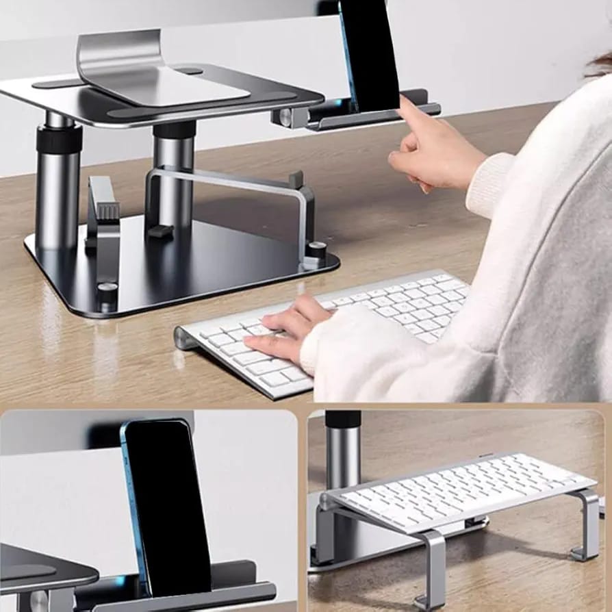 The IMac Riser System R08 C-19 is designed to enhance comfort and productivity by raising your laptop to a more ergonomic viewing height. Featuring an adjustable design that supports laptops from 10.1″ to 17.3″, it helps reduce neck and back strain during long working sessions. Its sturdy construction ensures reliable support, while the open design promotes airflow to keep your device cool. Ideal for home, office, or study setups, this stand combines functionality with a clean, modern look.