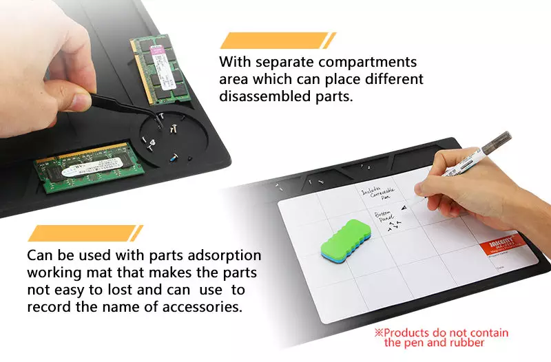 • You can use with the magnetic mat to mark down the parts name and keep it more safely (the magnetic is included).