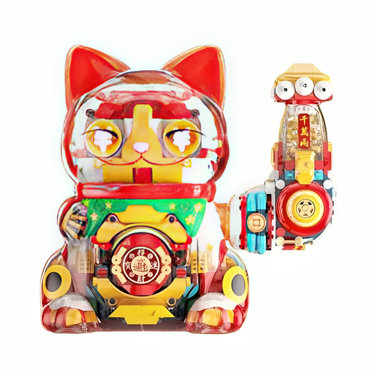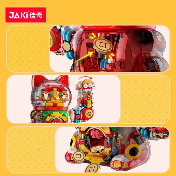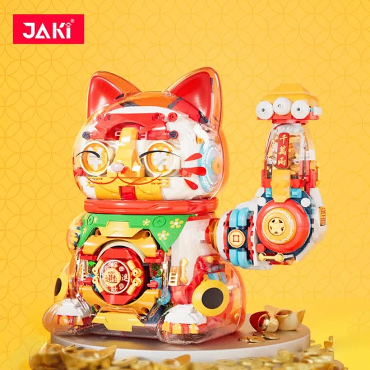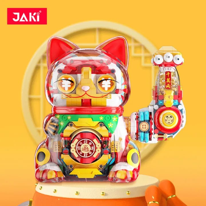 The JAKI Super Lucky Cat (JK8888-2) is a fun and decorative building-block kit inspired by the traditional lucky cat. With 760 pieces, this set allows for motorized and moveable features, making it perfect for display or hands-on creative assembly. Ideal for collectors and fans of decorative models.