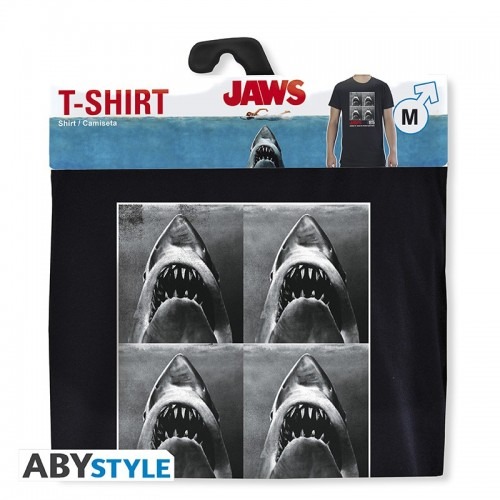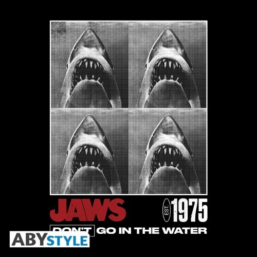 The JAWS – “Don’t Go in the Water” Men’s T-Shirt (Black) is an officially licensed merchandise from the iconic 1975 thriller. This black short-sleeve tee features a bold graphic of the menacing shark with the cautionary phrase “DON’T GO IN THE WATER” prominently displayed. Made from 100% cotton, it offers a comfortable fit for everyday wear. The shirt is available in various sizes, including XXL, ensuring fans of all sizes can showcase their love for this classic film.