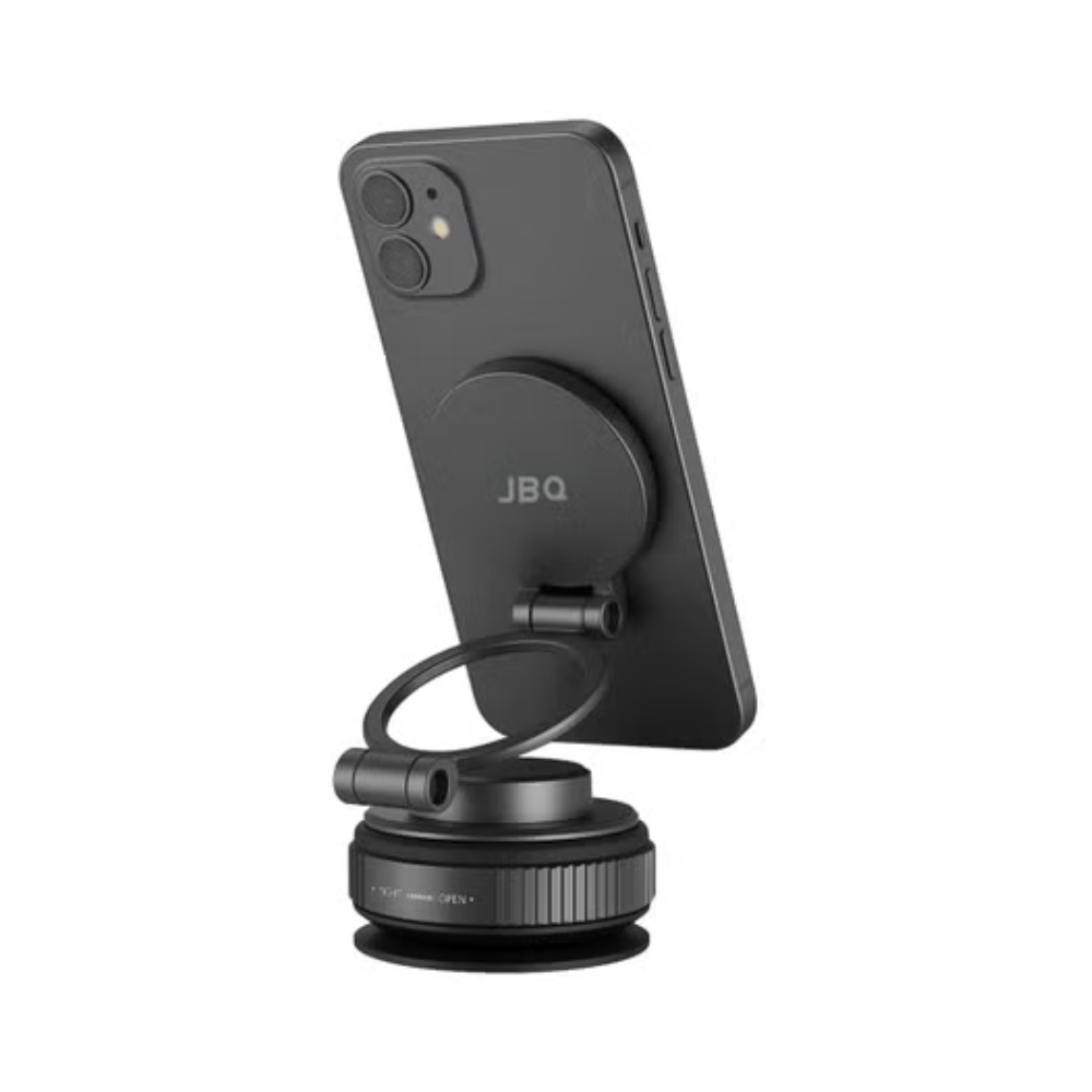 The JBQ Vacuum Lock Phone Mount combines strength, flexibility, and convenience for a reliable smartphone viewing experience. Its strong suction grip ensures secure attachment to your dashboard, windshield, or desk, while the 360° rotating head allows full flexibility to switch between portrait and landscape modes. The foldable design makes it compact and portable, ideal for travel or storage. Equipped with a universal magnetic stand, it supports all smartphone sizes and brands with a powerful hold. Installation is quick and tool-free thanks to the innovative vacuum lock system, making setup effortless.