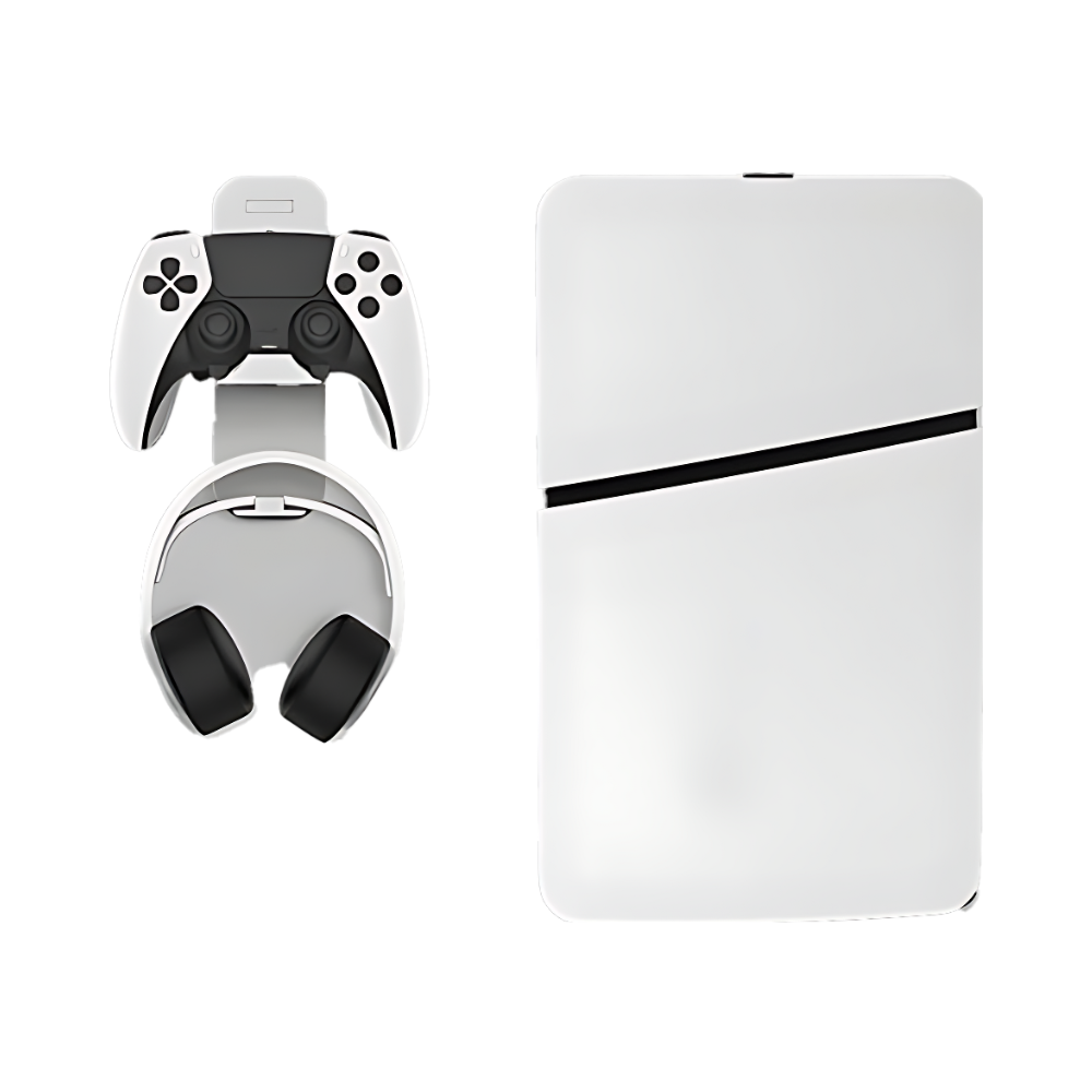 The JYS Wall Mount & Controller Holder for PS5 Slim is a sleek, space-saving accessory designed to securely mount your PlayStation 5 Slim to a wall while keeping your controllers and headset organized. Featuring built-in holders or charging docks for two controllers and a hanger for your headset, it helps declutter your setup and gives your gaming area a clean, floating aesthetic. The mount is engineered to provide easy access to all ports, vents, and cables, while maintaining firm support for the console.