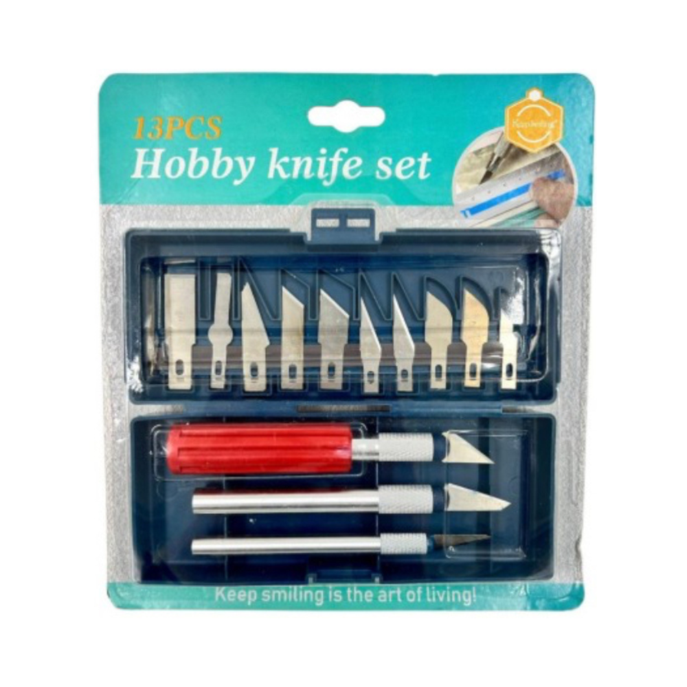 The Keep Smiling I0065 13pcs Hobby Knife Set is a versatile set designed for precision cutting, carving, and crafting. Ideal for DIY projects, model making, paper crafts, and other detailed work, this set includes multiple interchangeable blades and a comfortable handle for accurate and safe operation.