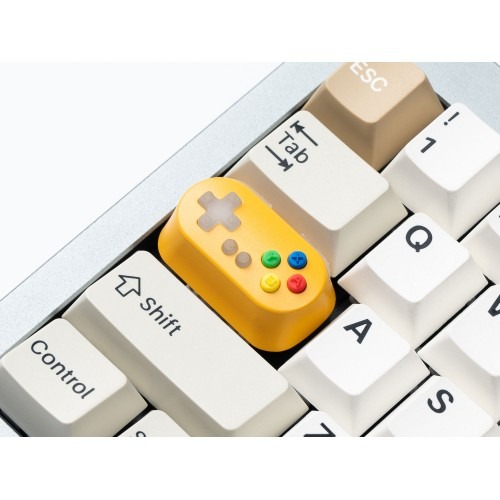 The Keychron AT-2 Gamepad Controller Capslock Keycap is a playful and nostalgic artisan keycap designed to replace your Caps Lock key. Crafted from durable aluminum alloy, it features retro-style silicone buttons that shine through when backlit, mimicking the look of a classic game controller. This keycap is CNC-machined and anodized for enhanced durability and a premium finish. Weighing approximately 5 grams, it is compatible with MX-style switches and is ideal for adding a touch of retro gaming flair to your mechanical keyboard.