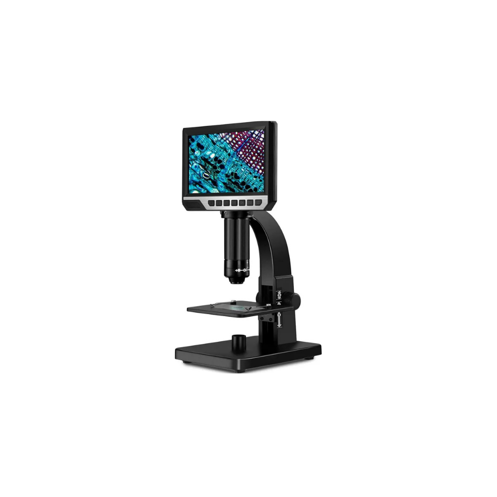 The K&F Concept LCD Digital Microscope features a 7-inch IPS LCD display with 1080p resolution, offering up to 2000× magnification for detailed observations. It includes dual lenses for both macro and microbiological analysis, a 12MP built-in camera for capturing images and 1080p videos, and supports up to 64GB SD cards. Adjustable LED lighting ensures clear visibility of various specimens, while USB and DC power options provide flexibility for use in different settings. Compatible with Windows and macOS, this microscope is suitable for scientific study, hobby use, and professional applications.