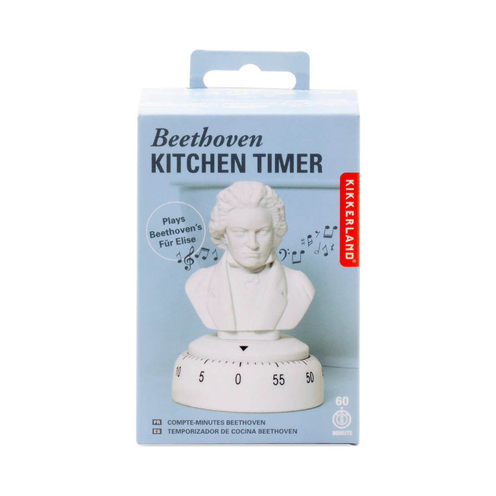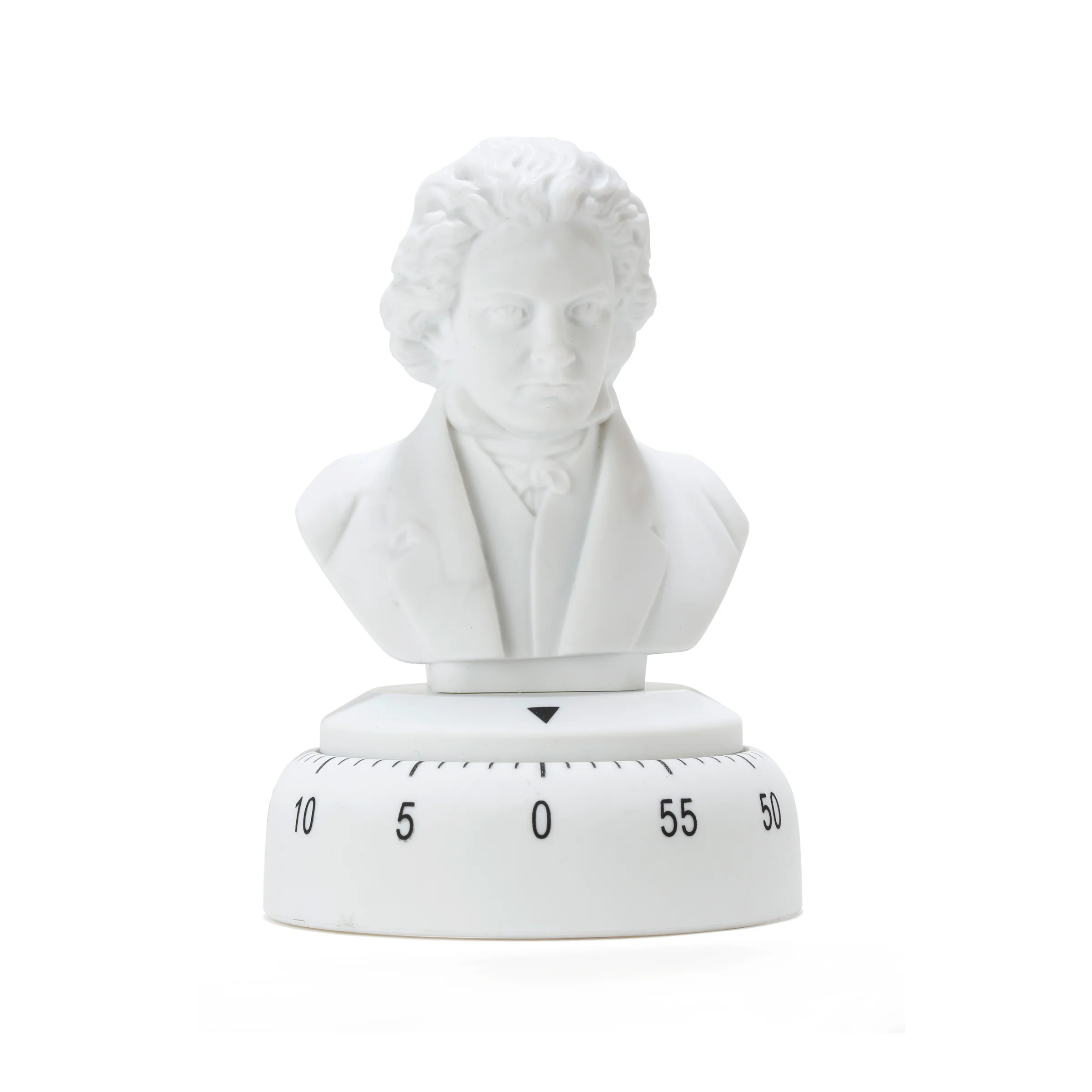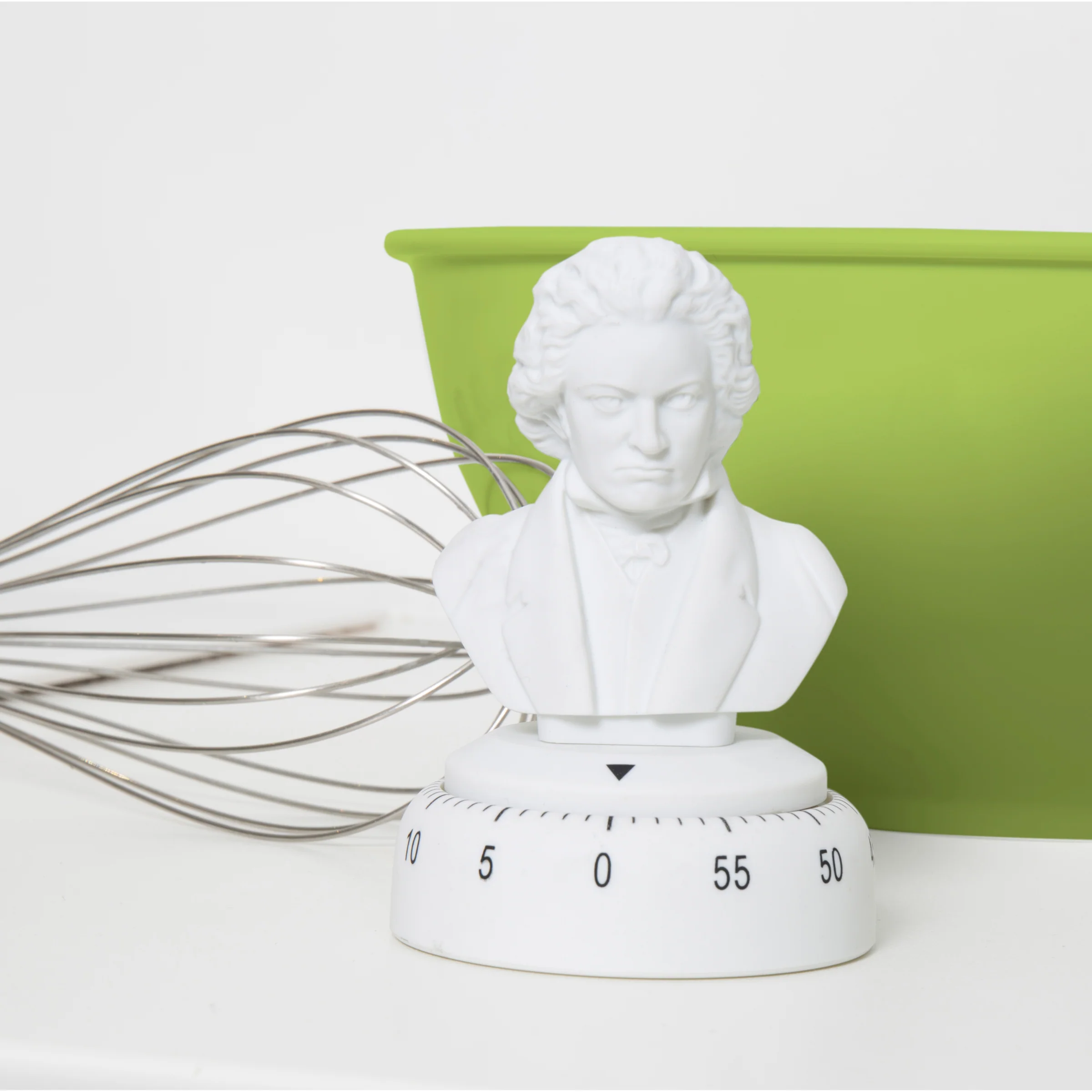 The Kikkerland Beethoven Kitchen Timer is a 60‑minute wind-up timer shaped like Beethoven’s head. When the timer hits zero, it plays Beethoven’s “Für Elise” with a crescendo of applause — adding a touch of classical drama to your cooking.